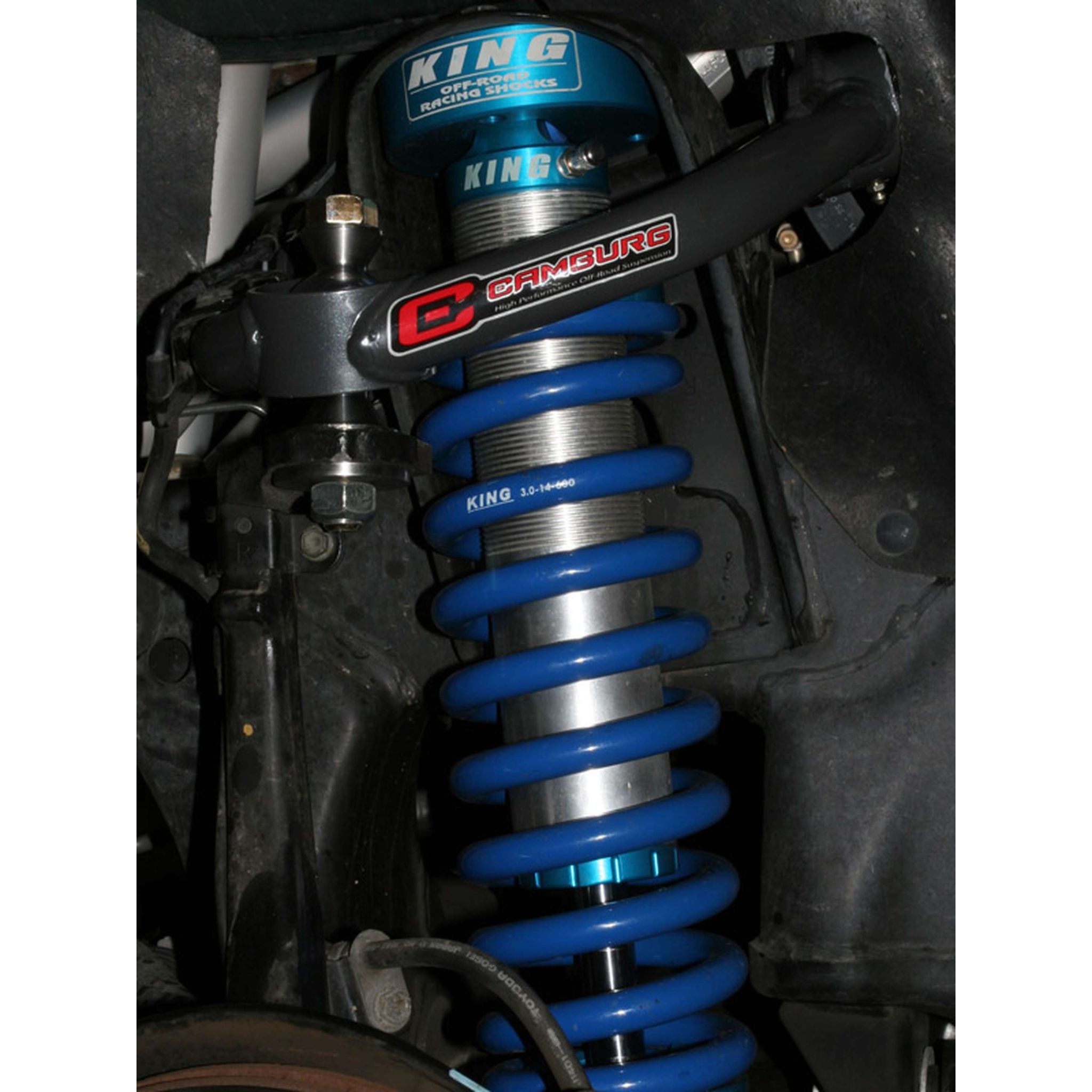Our King 2.5 Performance kit for the Toyota 4-Runner takes our leveling kit to the next level. We utilize Kings’s 2.5 series front coilovers. This combination of parts not only improves the ride and handling on-road but more so off-road with the larger diameter shocks. With the upper arms these shocks increase wheel travel. Improved ride both on and off-road Eliminates weak upper ball-joint Increased wheel travel Corrected suspension geometry Made in the USA After lifting your truck, the stock upper arms become the limiting factor and hold back your suspensions performance. Our uniball upper arms address these issues and more. Replacing the stock ball-joint with a uni-ball bearing, we can increase wheel travel with a part that is considerably stronger and will last longer under extreme conditions. We also engineered the arms with more caster and changed the camber curve to correct geometry so the vehicle aligns correctly and improves driving characteristics and handling both on and off-road. In the rear we go with a pair of King’s 2.5 remote res. shocks. They have a substantial increased oil capacity due to their size and have a lot more control and damping. The compression adjuster allows you to tune the shock softer and firmer depending on what you’re looking for and how you’re the truck. Since they are longer in length they increase rear wheel travel and articulation. These are designed to be used with stock coil springs or our Camburg springs for maximum useable wheel travel and performance. 0-3" lift (front) Improved ride and handling Easy bolt-on installation Made in the USA.