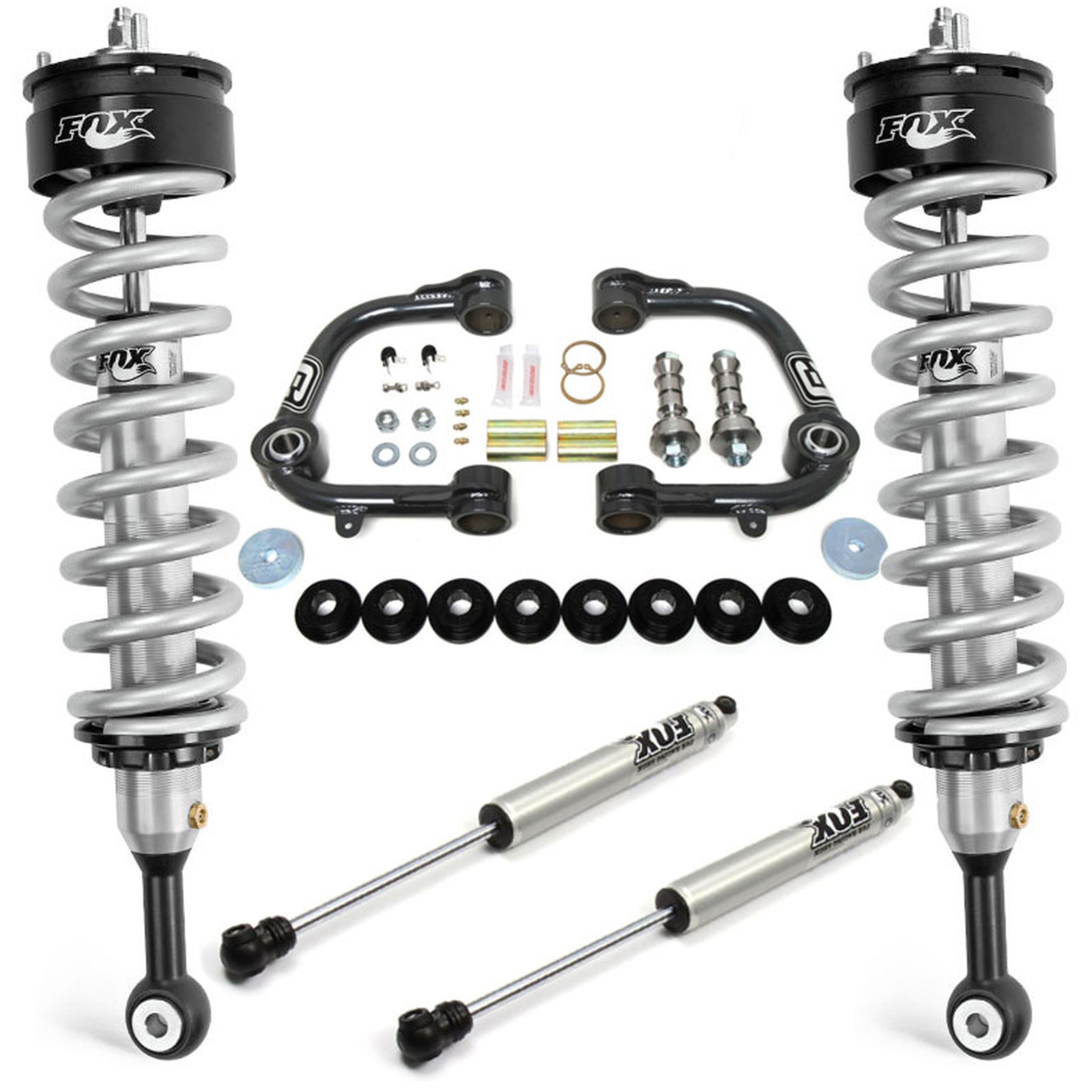 Our Camburg FOX 2.0 Trail Series kit is a great all around suspension system for your Toyota Tundra utilizing FOX's 2.0 series of shocks. FOX 2.0 Performance Series IFP Coilovers are valved specifically for your application, we are able to gain 0-3 inches of lift and increase wheel travel as well. These Factory Series shocks feature a smooth-bore, clear coated, zinc plated, honed seamless alloy body, black anodized 6061-T6 billet aluminum components, a 5/8" hard chrome plated heat treated alloy steel shaft and an internal reservoir design to separate shock oil from the high-pressure nitrogen. FOX direct replacement shocks deliver race-winning performance in a simple direct replacement bolt on shock. Each application has been rigorously tested by FOX engineers to maximize suspension travel and performance on and off the road. After lifting your truck, the stock upper arms become the limiting factor and hold back your suspensions performance. Our uniball upper arms address these issues and more. Replacing the stock ball-joint with a uni-ball bearing, we can increase wheel travel with a part that is considerably stronger and will last longer under extreme conditions. We also engineered the arms with more caster and changed the camber curve to correct geometry so the vehicle aligns correctly and improves driving characteristics and handling. In the rear we go with a pair of FOX’s 2.0 Performance Series shocks. These shocks have a larger aluminum shock body which holds more oil for better shock performance offroad and have a firmer ride. 0-2" lift (front) Improved ride and handling Easy bolt-on installation Made in the USA.