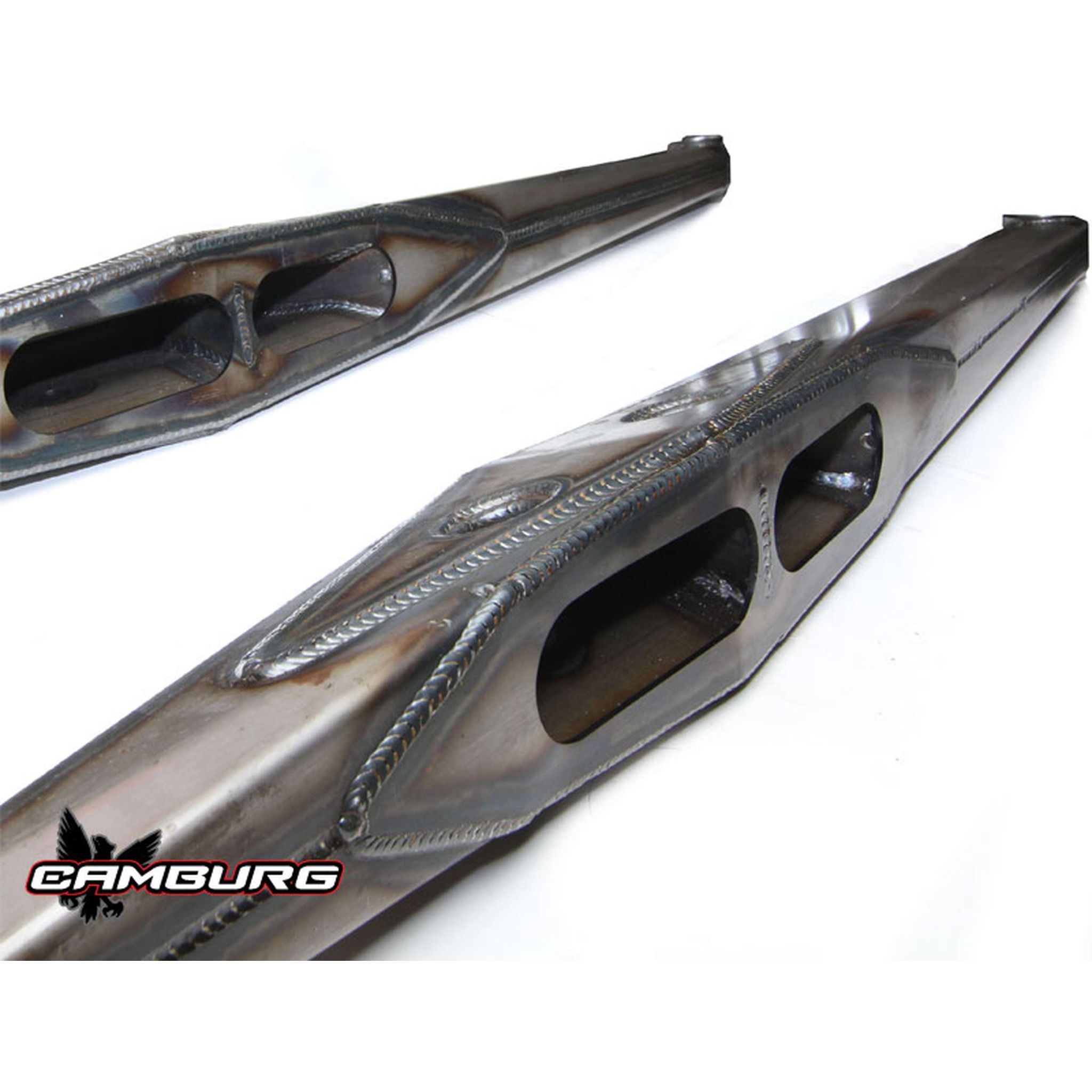 Our 4-link kit for Ford Bronco takes the rear suspension to the next level. This is for heavily modified PreRunners and race trucks only. This kit is designed specific for the unique geometry the Bronco requires since it has a short double carden rear driveshaft. The upper and lower mounts bolt to the frame using existing holes to properly position them so their is no guess work where they go. This kit will yield 20-24" of travel and pushes the rear wheelbase back 3". Fiberglass rear fenders will have to be modified for revised wheel position. The lower links are designed to use a 2.5-3" coilover and 2.5-4" bypass shock. These require your shocks to use 3" longer lower rod ends with 1/2" x 1.50" spacers. This is one component of many needed to convert your leaf spring suspension to a 4-link setup. This kit is for the serious racer and requires extensive fabrication. We recommend a qualified off-road race shop to install and setup this suspension system. This kit is for the serious racer and requires extensive fabrication. We recommend a qualified off-road race shop to install and setup this suspension system. Rear End Housing Tabbing Info Lower link tabs straight down and on center with housing axle tube Lower link tab width – 52.50" on center with minimum 70" WMS.