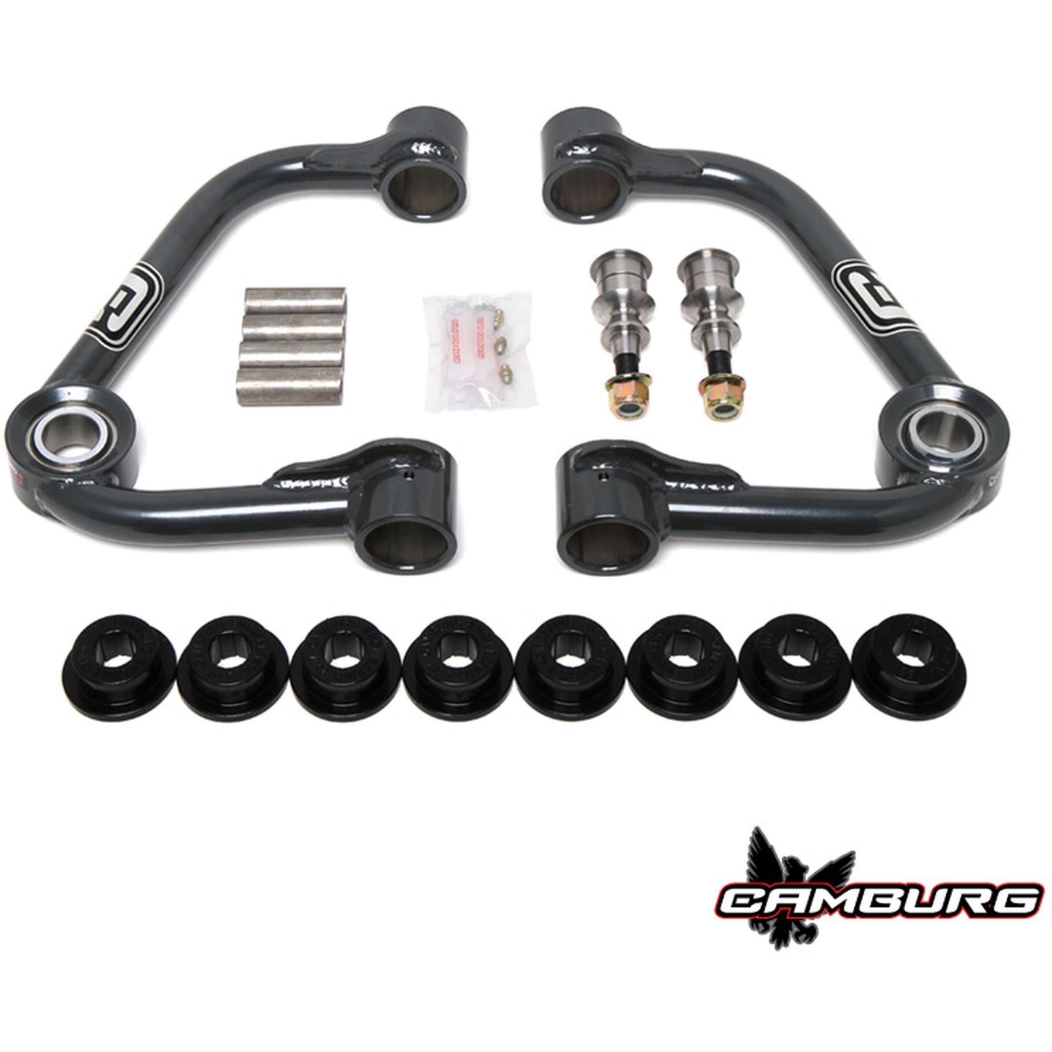 With Bilstein’s 6112 line of adjustable shocks we’ve put together a great suspension kit for that customer looking to lift the front of their F-150, improve the ride quality both on and off-road all while staying within a price point that maximizes your gains. The 6112 Series optimizes off-road and on-road capabilities with a 60mm digressive piston for increased damping control. After lifting your truck, the stock upper arms become the limiting factor and hold back your suspensions performance. Our uniball upper arms address these issues and more. Replacing the stock ball-joint with a uni-ball bearing, we can increase wheel travel with a part that is considerably stronger and will last longer under extreme conditions. We also engineered the arms with more caster and changed the camber curve to correct geometry so the vehicle aligns correctly and improves driving characteristics and handling. Adjustable shocks for 0-2" of lift Increased wheel travel Corrected suspension geometry Improved ride on and off-road 100% Bolt-on Made in the USA We combine these with Bilstein’s 5100 rear shocks that gain more wheel travel and improve the ride for everyday driving. Note: factory 20" wheels will not clear the upper arm and may require a wheel spacer. We highly recommend aftermarket wheels with the correct offset with all our Ford kits for optimum performance and fit. 0-2" lift (front) Improved ride and handling Easy bolt-on installation Made in the USA Note: factory 20" wheels will not clear the upper arm and may require a wheel spacer. We highly recommend aftermarket wheels with the correct offset with all our Ford kits for optimum performance and fit.