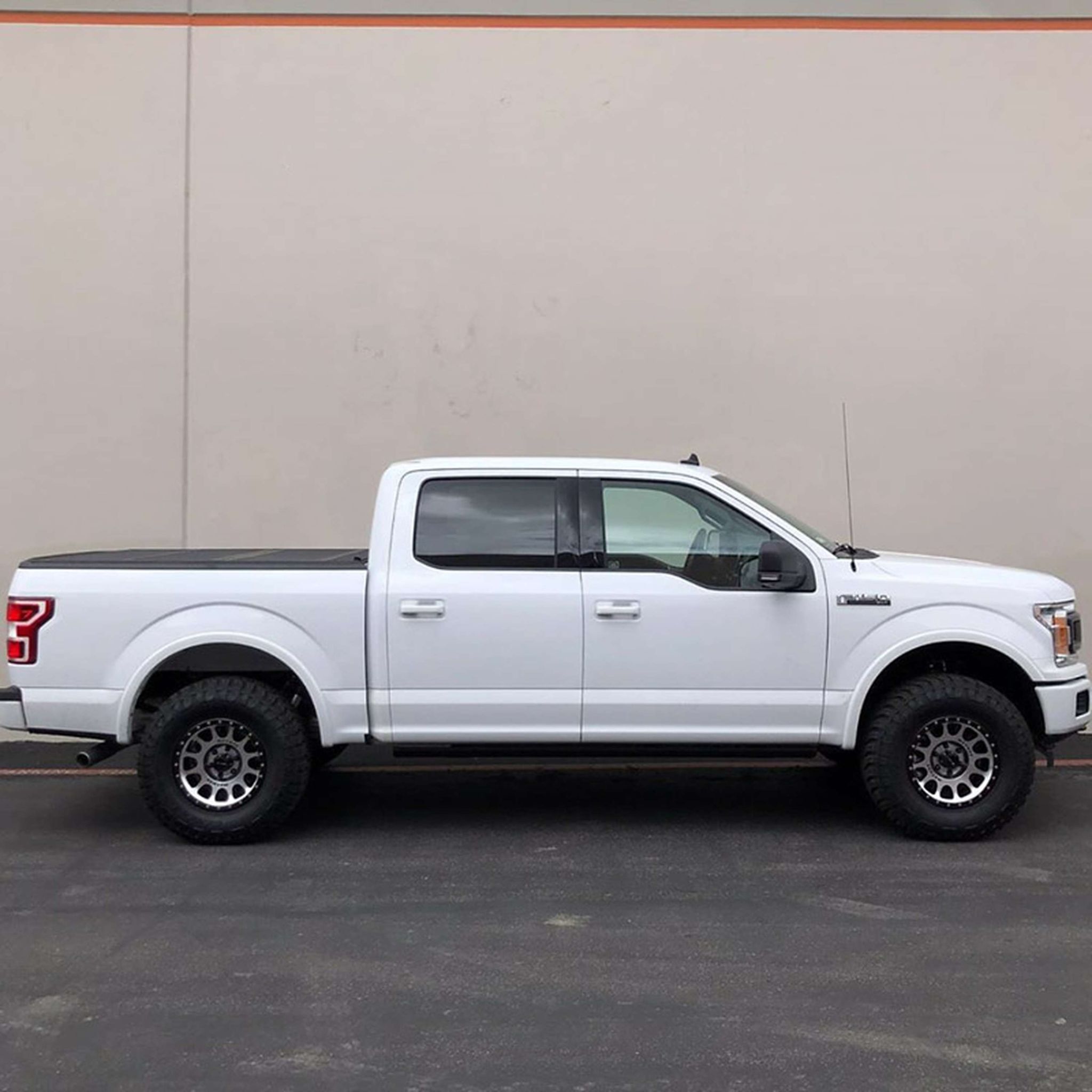 Our FOX 2.5 Factory DSC kit is a high-performance suspension upgrade for the Ford F-150. It includes FOX's 2.5 Factory Series front coilovers with DSC compression adjusters, which provide precise tuning and improved handling. The kit also features remote external reservoirs for lower operating temperatures and increased oil capacity. The upper arms in the kit address limitations of stock arms, improving wheel travel and correcting suspension geometry. In the rear, the kit includes FOX's 2.5 Factory Series DSC remote res. shocks, which offer increased control and damping. These shocks are designed to be used with stock or Deaver leaf springs for maximum wheel travel. Please note that factory 20" wheels may require a wheel spacer or aftermarket wheels with the correct offset for optimal fit and performance.