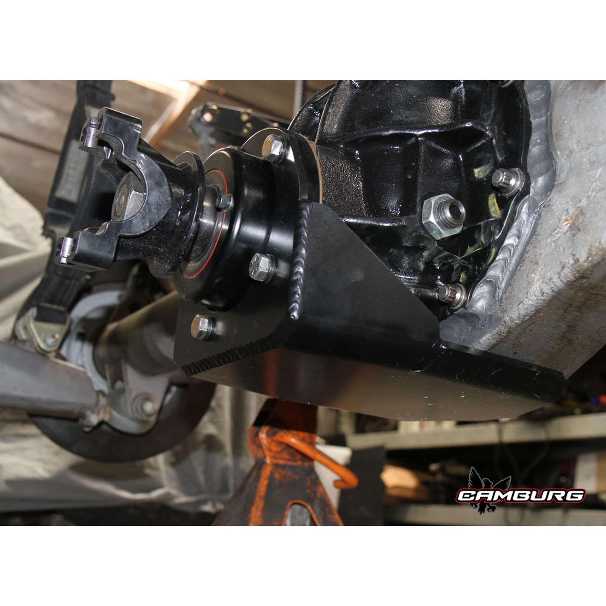 Our bolt-on rear diff skid plate is an easy addition to any Ford 9" rear end for added protection. They are laser cut from 1/4" steel and CNC formed and MIG welded. These fit all our Camburg 9" housings and most others. It's an easy install bolting onto the pinion support. This is the same diff skid plate we use on all our KINETIK race trucks. Our bolt-on rear diff skid plate is an easy addition to any Ford 9" rear end for added protection. They are laser cut from 1/4" steel and CNC formed and MIG welded. These fit all our Camburg 9" housings and most others. It's an easy install bolting onto the pinion support. This is the same diff skid plate we use on all our KINETIK race trucks.
