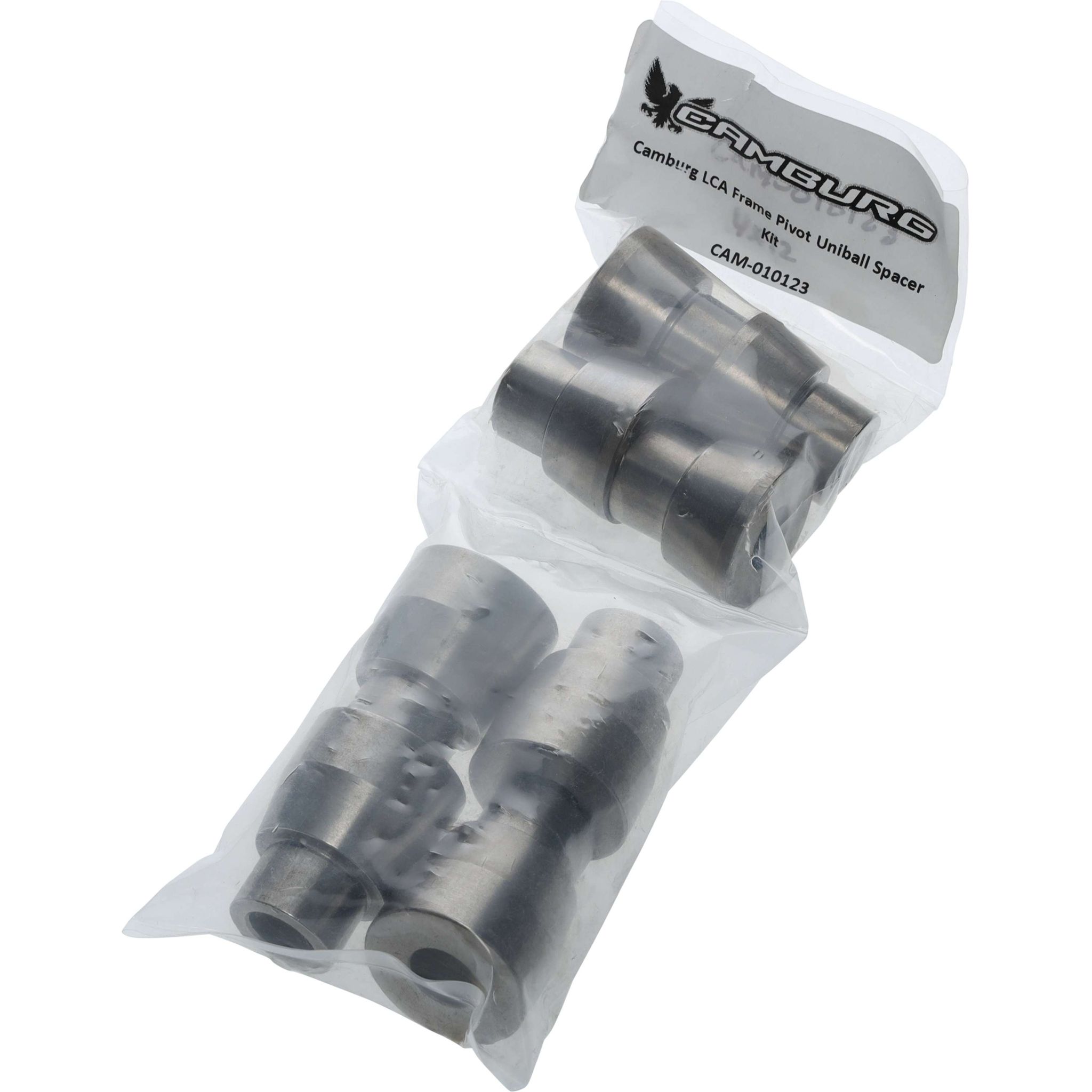 Looking to replace the uniball frame pivot spacers on your Camburg lower control arms? This kit comes with the necessary stainless steel uniball spacers for a pair of arms. These are vehicle specific and designed for Camburg lower controls arms for a precision fit.