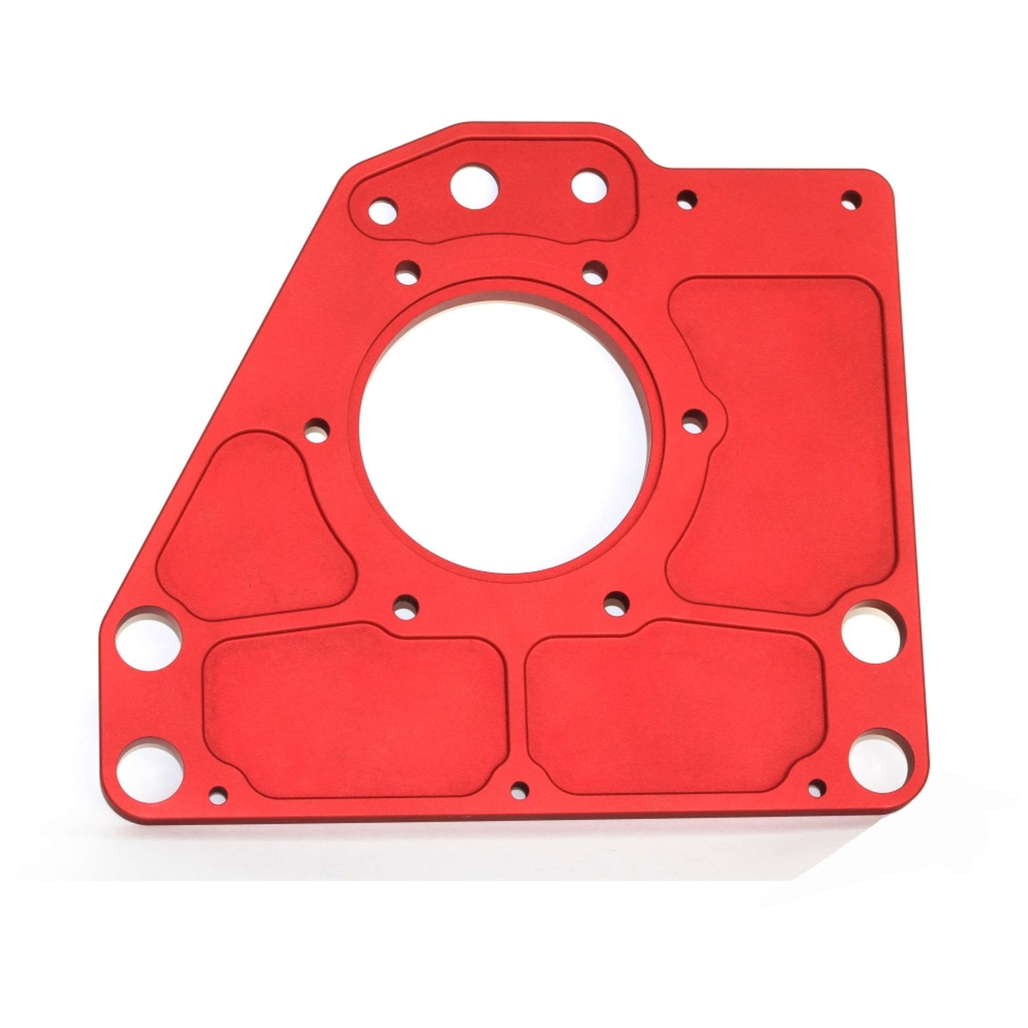 Our Camburg built KINETIK Turbo400 transmission rear chassis mounting plates are machined in-house from aerospace 6061 aluminum, then bead blasted and Type II anodized red. We use these in all our KINETIK 7200/6100/TT chassis' along with our custom builds. We fully machine these with pockets to reduce weight without compromising strength. This is designed to be used with our KINETIK or Culhane rear tail housing assemblies. We incorporated these to mount the remote transmission filter and AN bulkhead fittings.
