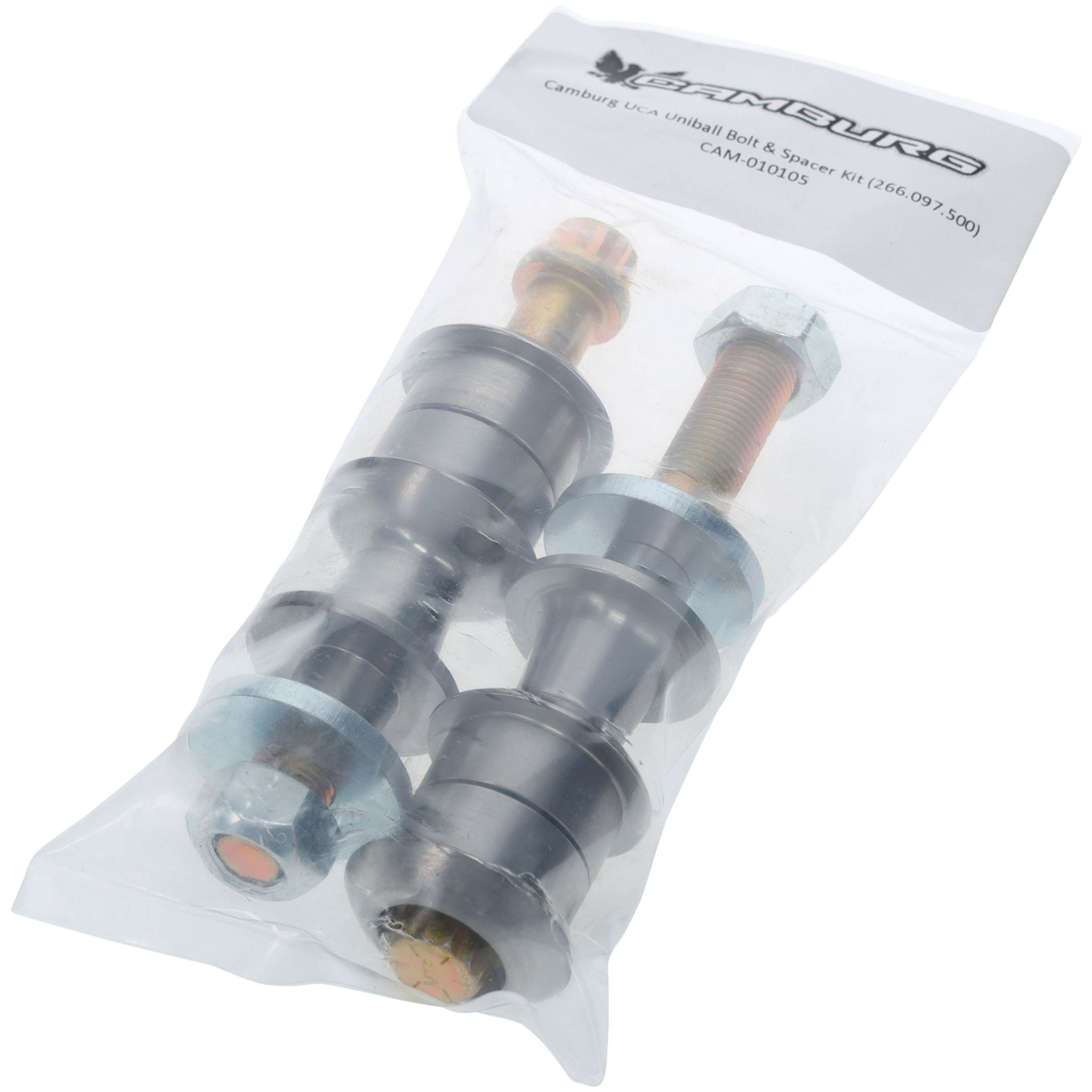 Looking to replace the uniball bolts and uniball spacers on your Camburg upper control arms? This kit comes with the necessary bolts and hardware along with the stainless steel top and bottom uniball spacers for a pair of arms. These are vehicle specific and designed for the OEM or Camburg spindles/knuckles for a precision fit.