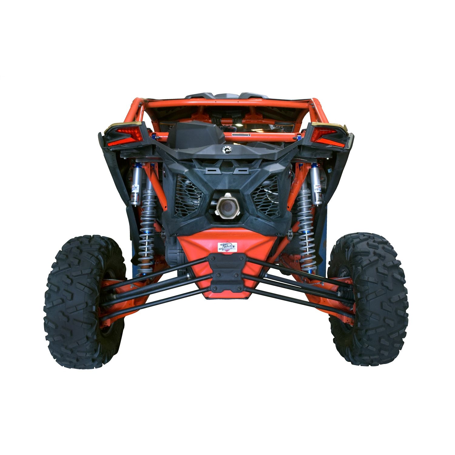 For the enthusiast who wants an awesome look and aggressive sound to match the looks and performance of the Can- Am Maverick X3. Gibson Exhaust Systems decrease backpressure and produce more torque and horsepower. With a Gibson non-packed muffler you can guarantee a consistent level of sound and performance quality for the duration of your vehicles lifetime. This dual rear utilizes a compression spring fitting which allows plenty of movement to handle all types of abuse eliminating the possibilities of breakage, Finished with a personalized Flat black powder coated rear beauty plate. 4.0 in. Intercooled Polished Stainless steel tips. All necessary hardware is included for a complete hassle free bolt on installation. Tested with a decibel reading of 93 dbs per the SAEJ 1287 testing procedure. USFS Approved Spark Arrestor. Made in USA. California Carb Legal