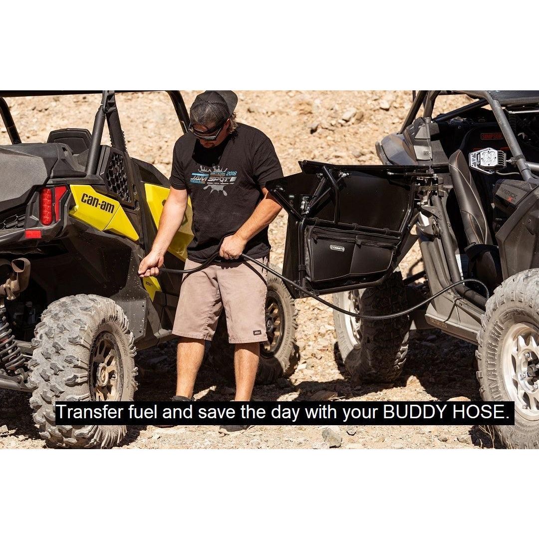 Be a Trail Hero: Thanks to the external port and Buddy Hose, you're not just extending your own adventure – you're also becoming the savior for friends who might run out of gas. A lifeline to keep the adventure going and a hero helping others get back to camp. Versatile Fit: Whether your front seats are in the up or down position, and even with most aftermarket skid plates, the AGM EXR Fuel Tank fits into your Can-Am X3. It's designed with compatibility in mind, ensuring a hassle-free experience. Removable and Non-Invasive: Planning to switch vehicles or return to your original setup? The AGM EXR Fuel Tank can be easily removed without leaving your car riddled with holes or damaged. It's a flexible investment in your off-road adventures. Elevate Your Off-Road Experience: Don't let your dream trips be limited by fuel capacity. With the AGM EXR Fuel Tank, you're not just extending your range, you're expanding your possibilities. Say "YES" to the adventure of a lifetime with the AGM EXR Fuel Tank. Don't let fuel constraints hold you back, Get your AGM EXR Fuel Tank today and rewrite the rules of how far you can go. Adventure awaits, and now you have the fuel to seize it!