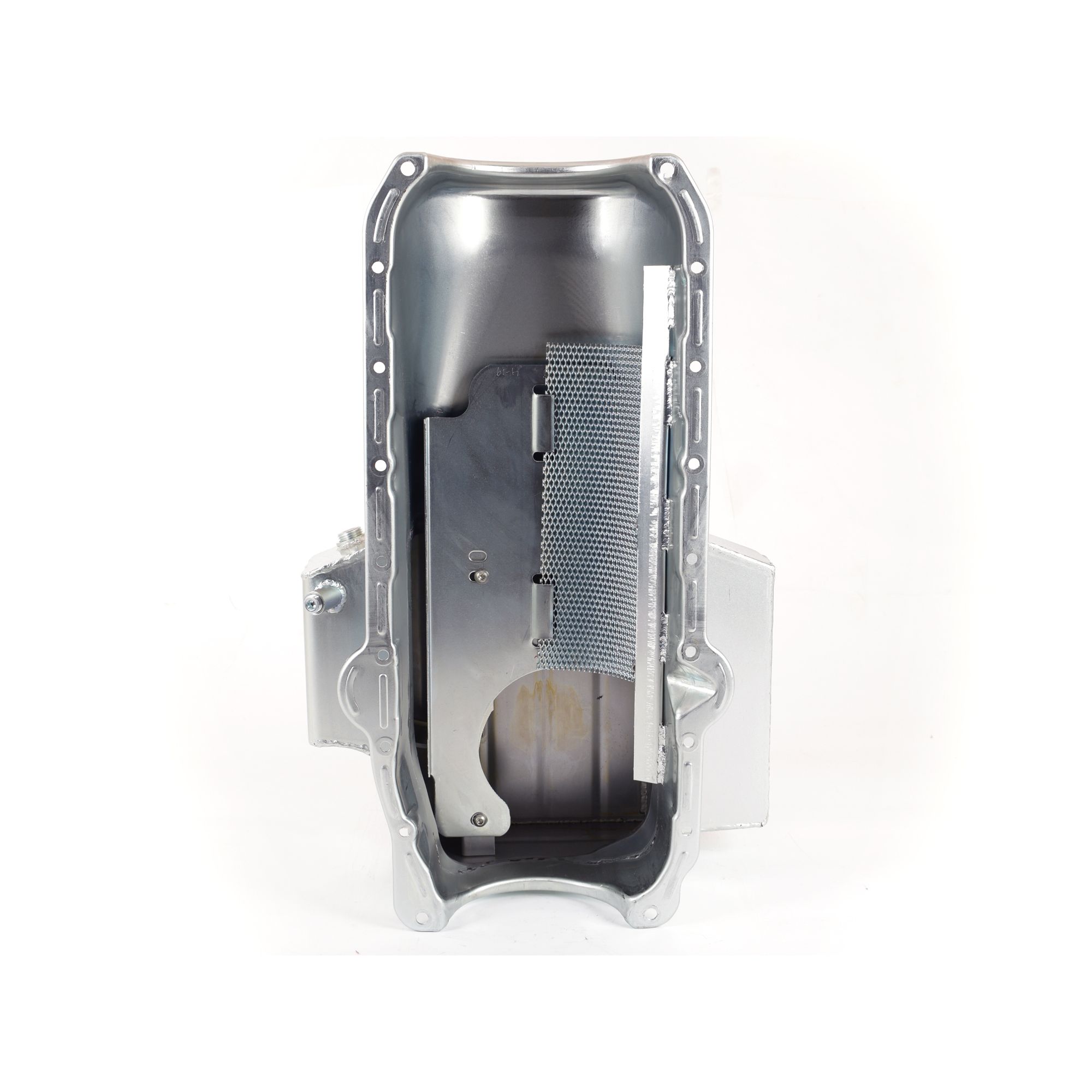 This competition wet sump is for '86 and newer Small Block Chevys with one piece seal. It is designed for x-member clearance in street stock and late models using ?78 and newer G body GM chassis (metric chassis). It has a 7" deep, 15" wide, 10-1/2" long sump and a 7 quart system capacity. Requires one of our pickups.