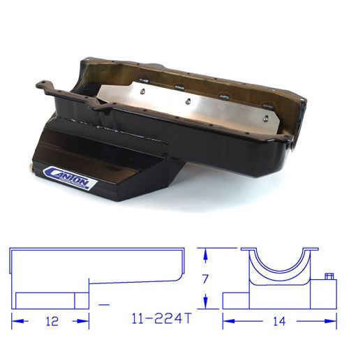 This Competition wet sump is for '86 and newer Small Block Chevys with a one piece seal. The oil pan is designed to be replacement/upgrade for the GM performance circle track crate engine "late model" pan. The deep "T" sump gives increased oil capacity in a shallow sump design. It has a 7" deep, 12" long, 14" wide sump and a 8 quart system capacity. Requires one of our pickups.