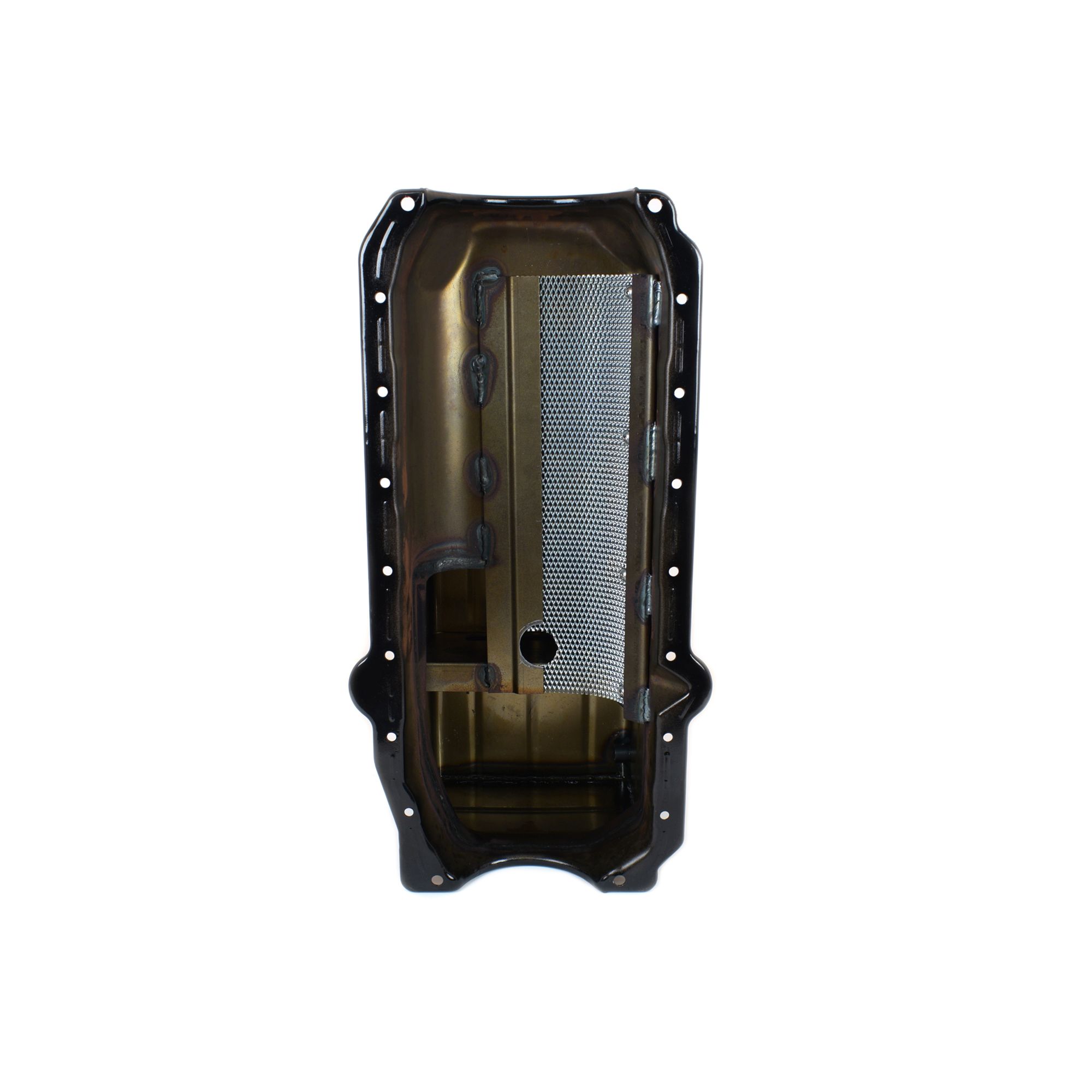This bracket drag race black powdercoated oil pan is for Small Block Chevy ?80 to ?85 blocks with right side dipstick and is designed to fit most stock chassis. It has an 8" deep by 9-1/2" long sump and a 6 qt. system capacity. Clears a 3.875" stroke with a steel rod. Will work with stock or aftermarket starters. This pan requires one of our pickups.
