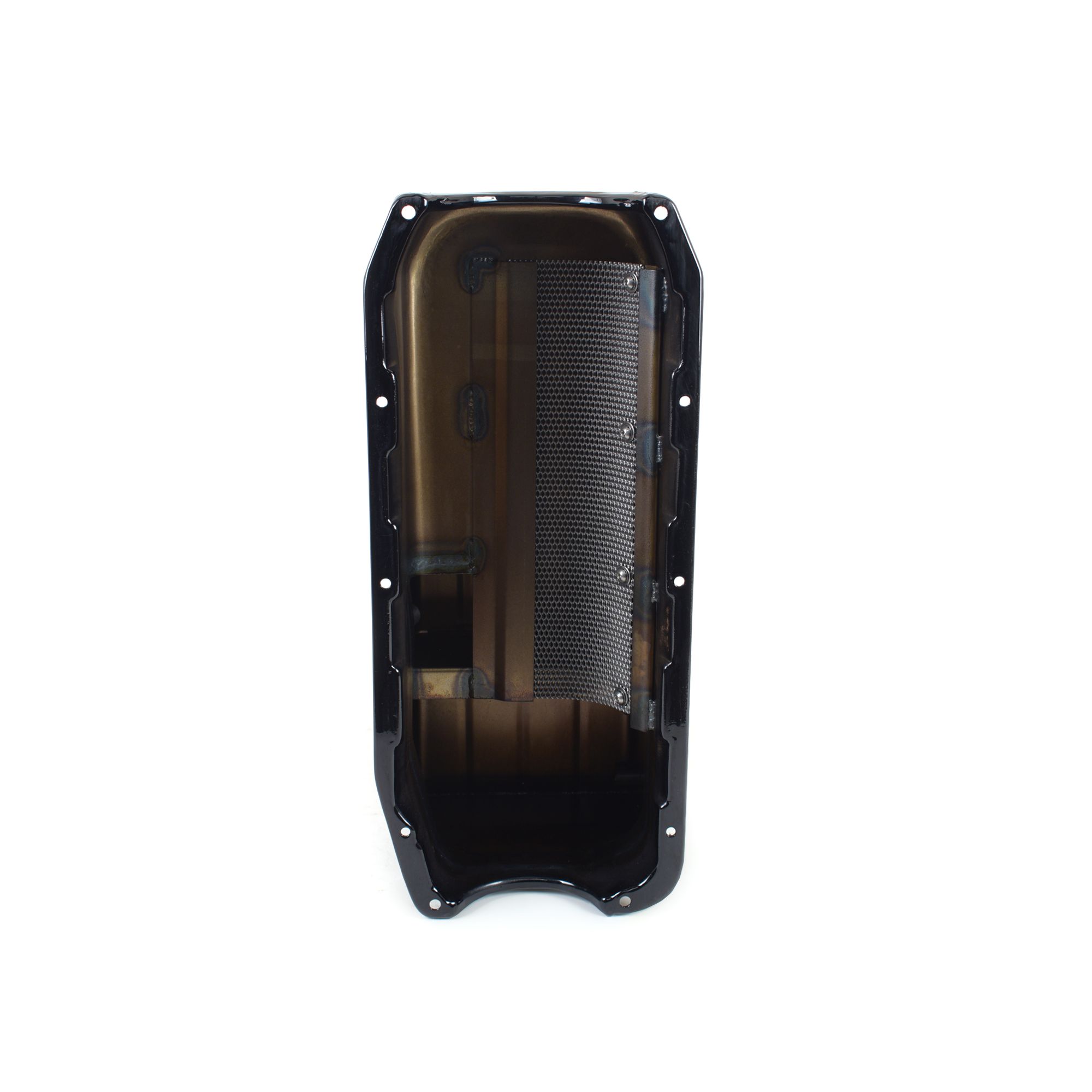 This bracket drag race stroker oil pan is for Small Block Chevy pre-?85 blocks with a two piece rear main. It is designed to fit most stock chassis. It has an 8" deep by 9-1/2" long sump and a 6 qt. system capacity. Clears a 4" stroke with a steel rod. Will work with stock or aftermarket starters. This pan requires one of our pickups.