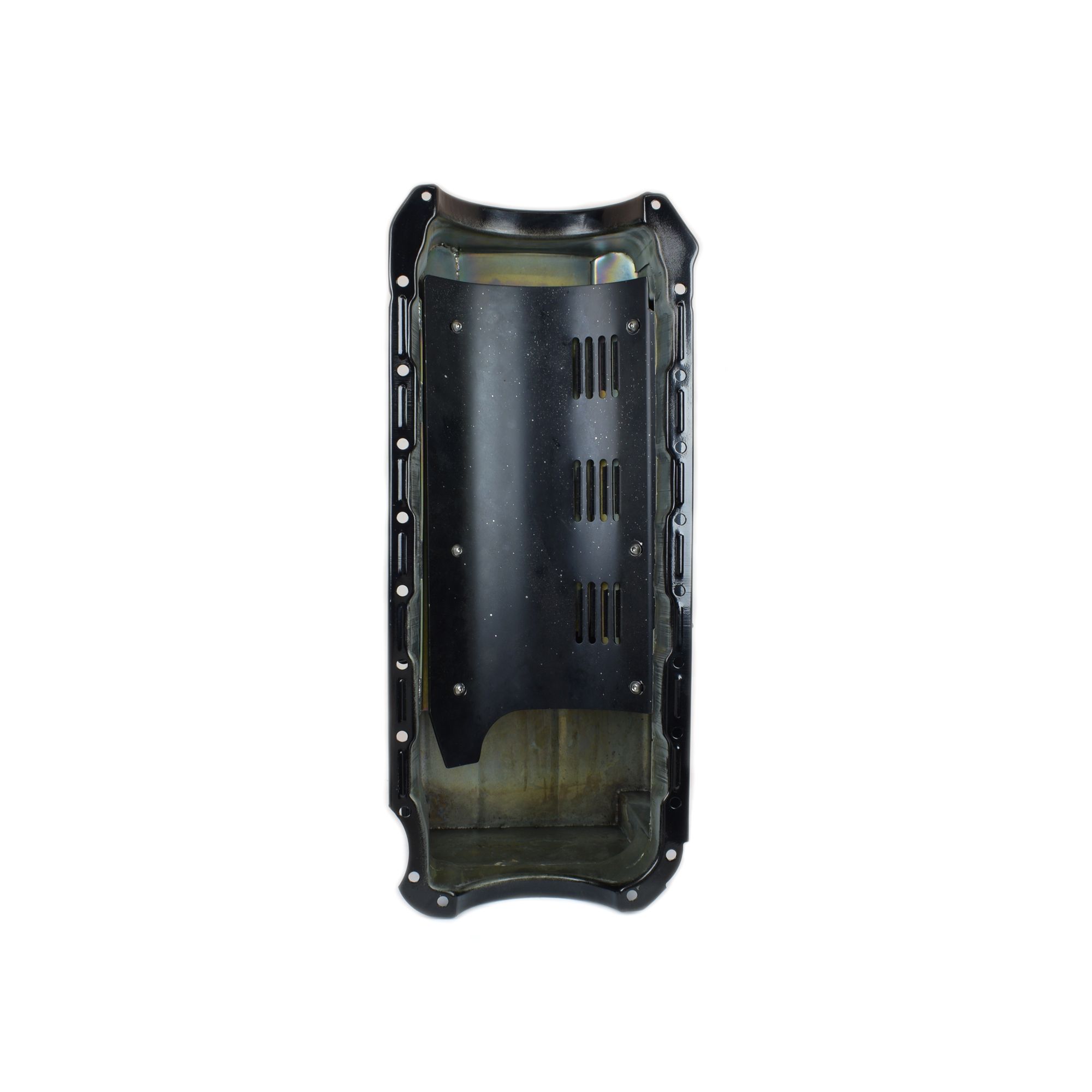 This black powder coat BBC drag race power series oil pan is for Mark 4 blocks. It has a 9" deep by 9" long and 9" wide sump and a 7 quart system capacity. It is designed to fit most stock chassis. Will work with aftermarket offset starters. This pan requires our 20-190 pickup.