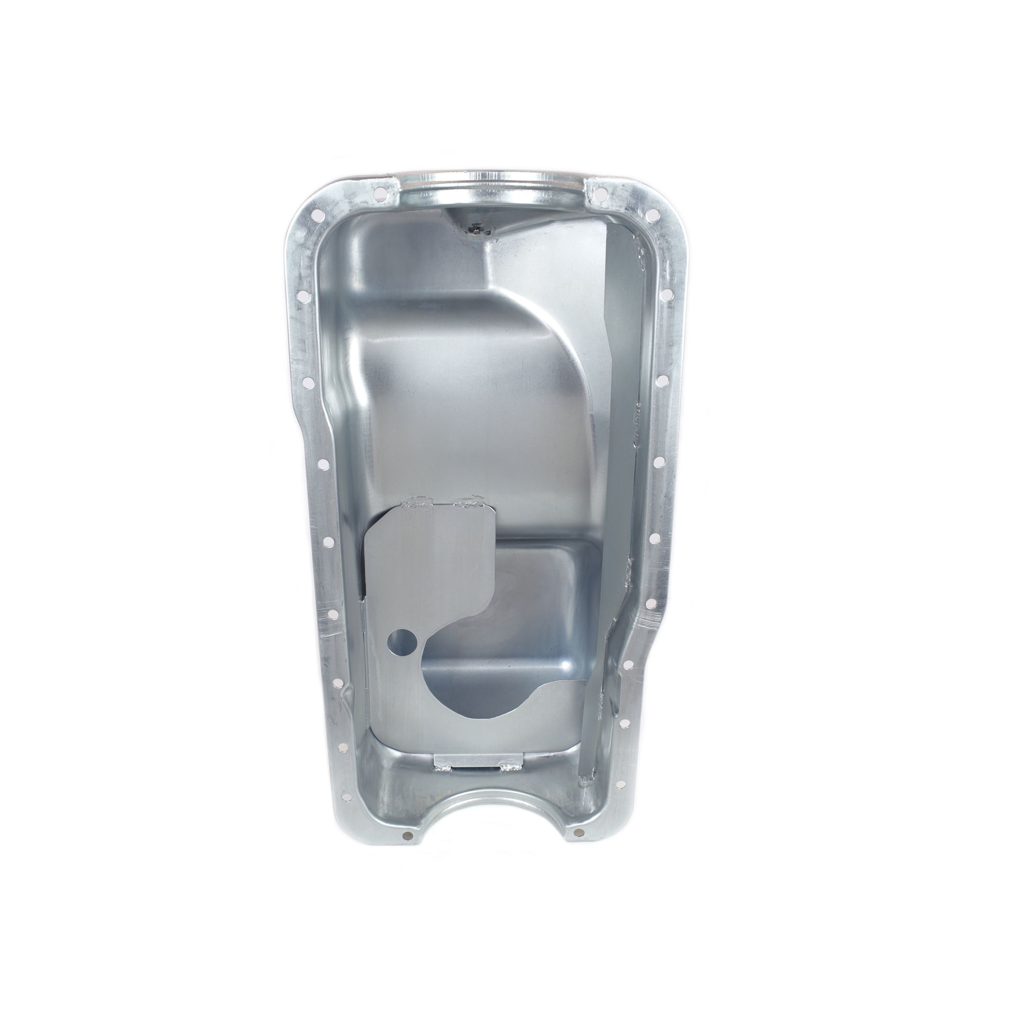 This rear sump stock eliminator pan is for Ford 289-302 blocks. This oil pan is designed for drag race stock eliminators, NMRA factory stock, and others requiring a stock appearing oil pan. Pan is notched for 2 bolt rear main sportsman engine blocks. This pan uses a stock pickup.