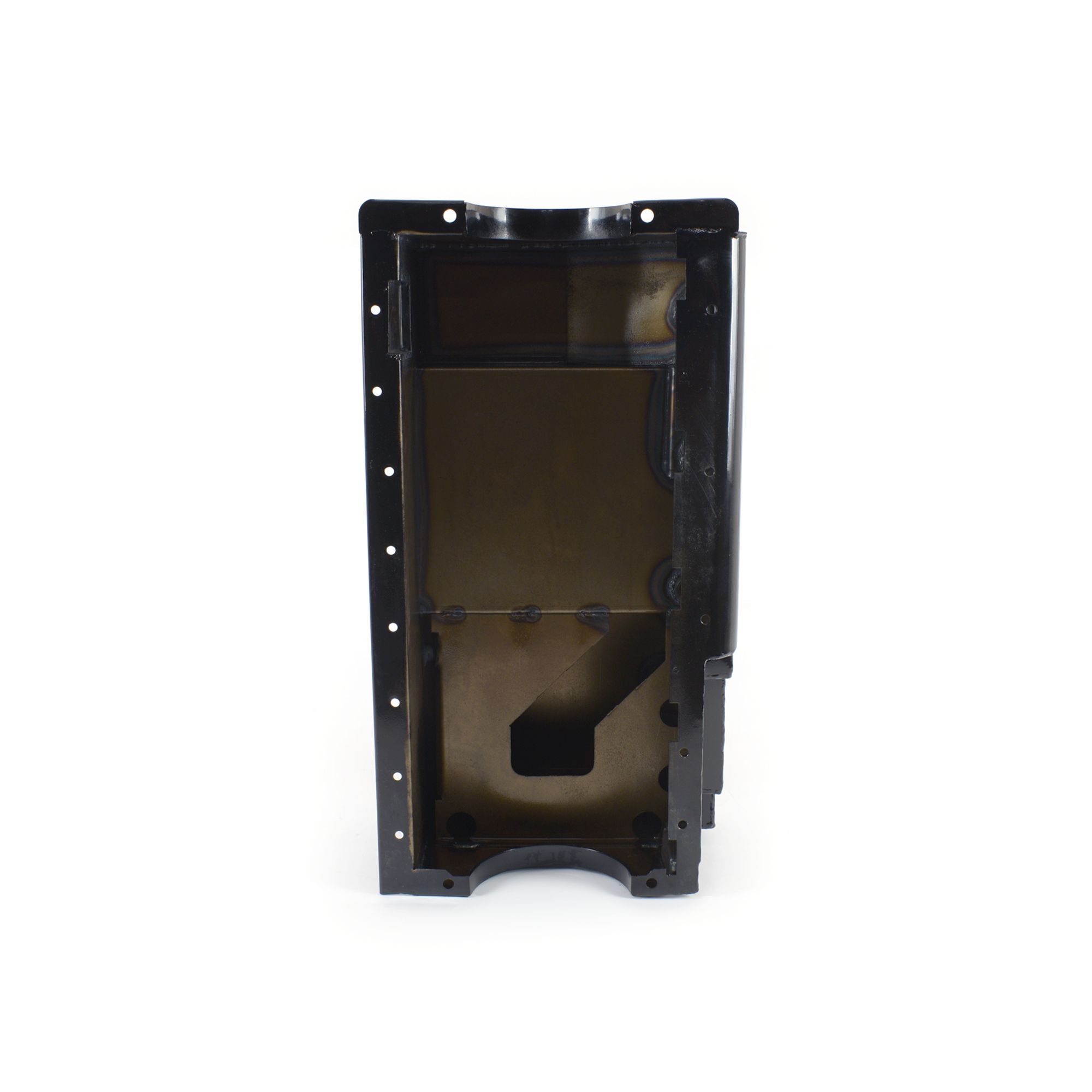 This Fox body drag race pro-style power pan is for 351W with 2 or 4 bolt rear main caps & 164 or 157 tooth flywheel applications. It has a 9" deep rear sump and a 7 qt. system capacity. Designed to work with our one-way screen windage trays, which mount directly to the main caps studs. The large oil recovery pouch requires the right side mounting bolts to be accessed through plugs in the bottom of the pan. Works with long tube headers & late model stock starter.