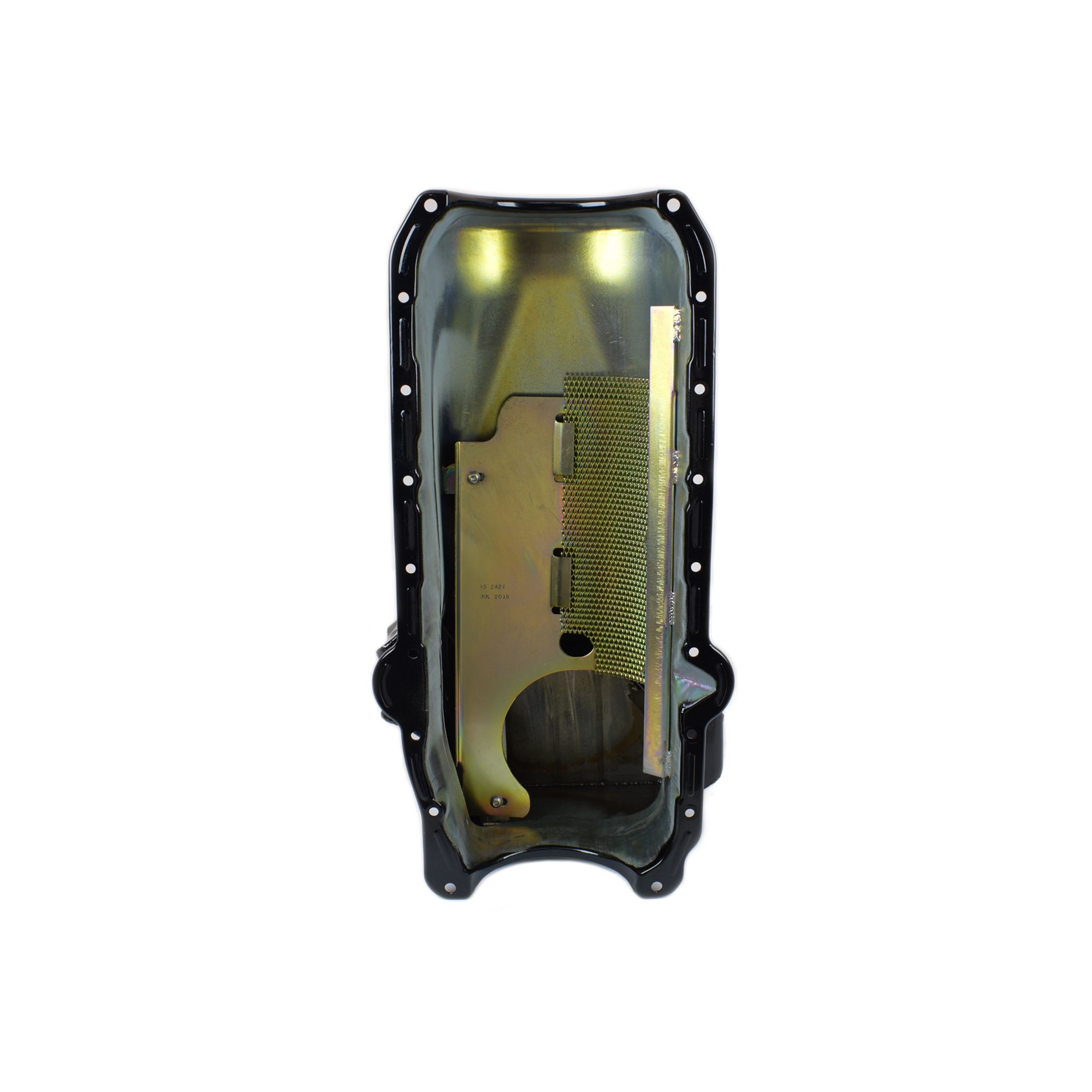 This black powder coat road race pan is for '86 and newer SBC blocks in '93-'97 F-Bodies. (also fits Impalas) It has a 7-1/2" deep, 12" wide, 8-1/4" long sump for a 6 qt. system capacity. Will work with stock starter. This pan requires one of our pickups.