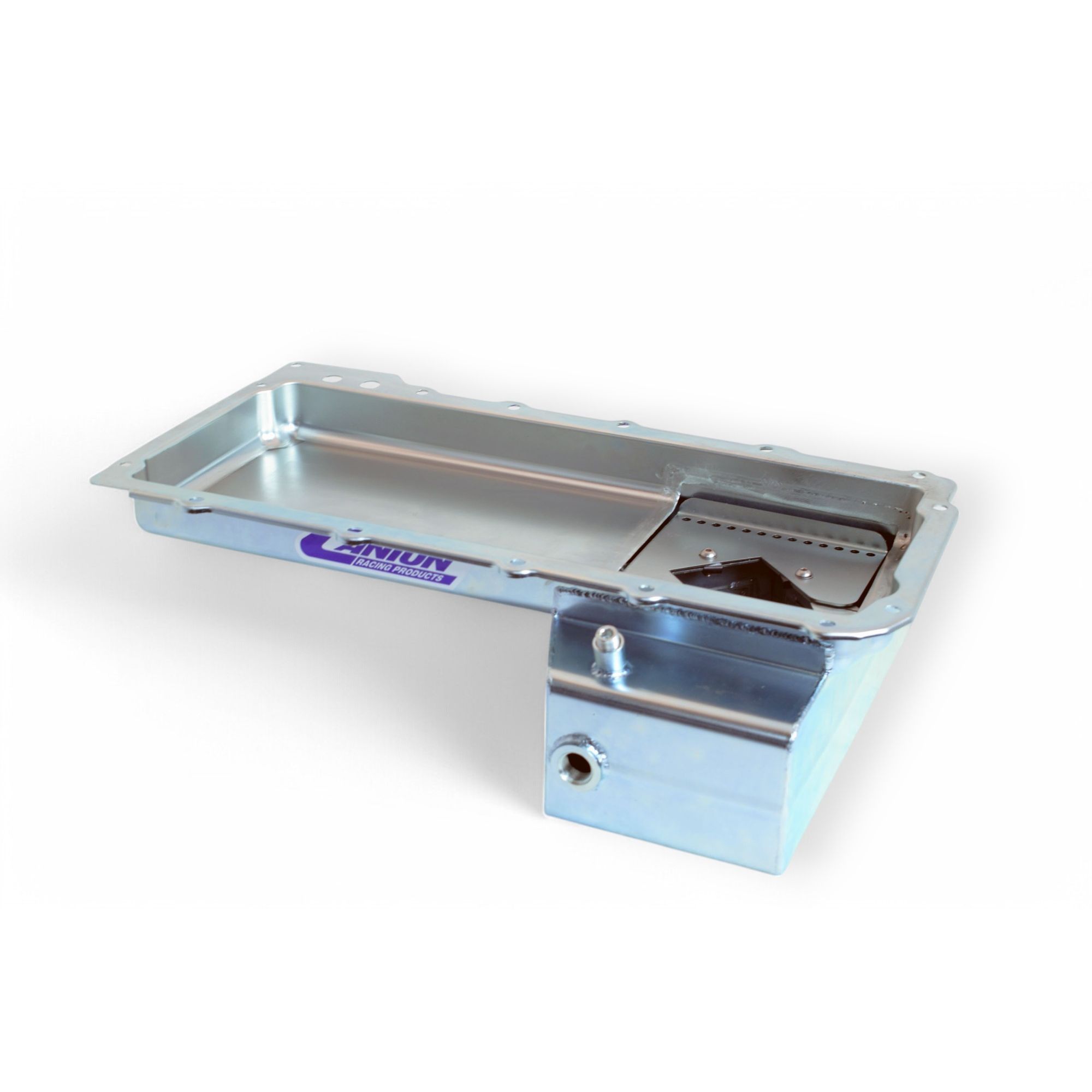 Canton?s new 15-276 front sump road race/drift car oil pan is designed for GM LS1/LS6 powered cars that require a shallow front sump oil pan. This pan is designed to use the GM pickup part number #12572654 from the 04-06 GTO. It?s diamond shaped baffle with 4 trap doors and removable windage/anti-slosh baffle provide the best oil control under demanding street and track conditions. With provisions for a pan mounted dipstick and 20 mm oil level sensor along with a 6.5 quart system oil capacity.