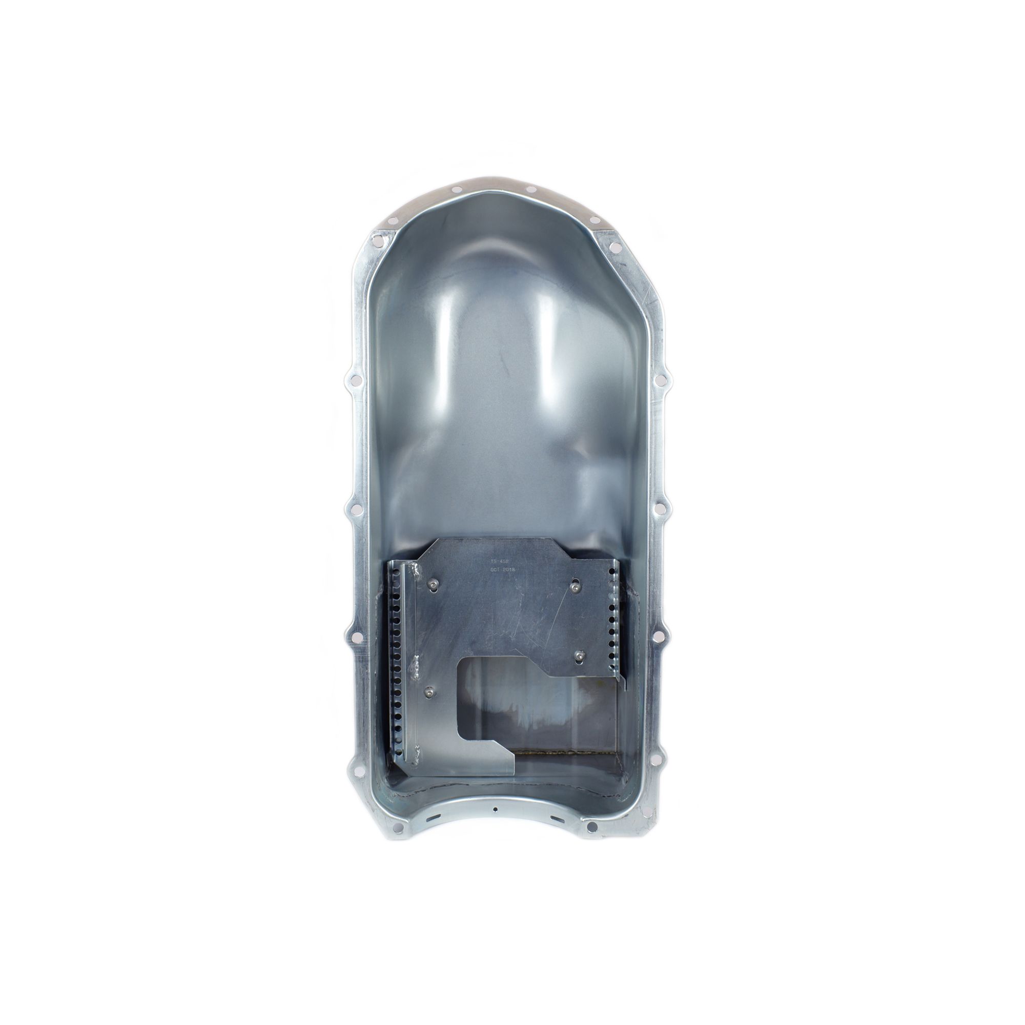 This road race pan is for Pontiac 301-455 engines and fits all G.T.O.?s and '67-'69 Firebirds. It has an 8" deep, 8" long sump for a 6 quart system capacity. This pan requires our 15-401 pickup.