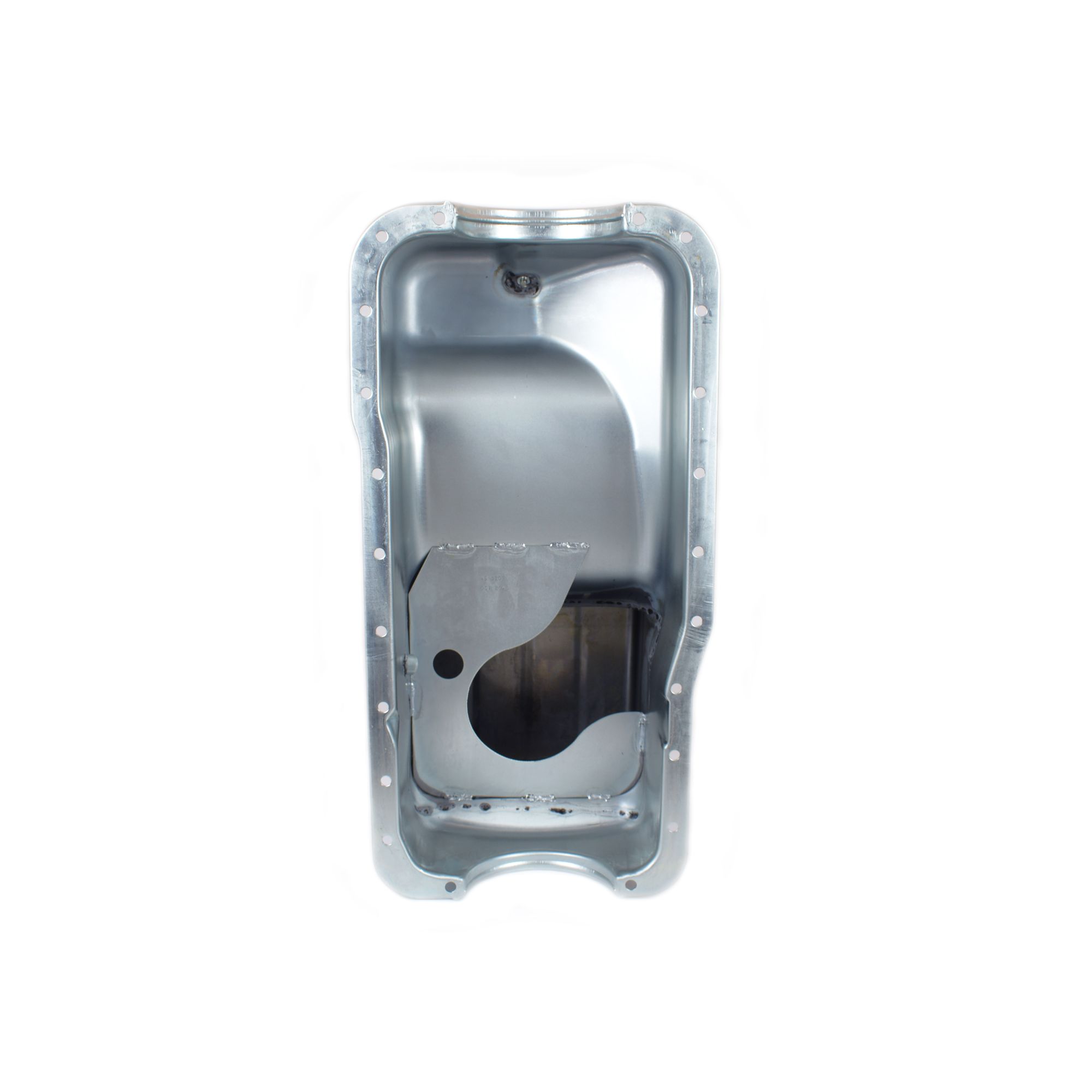This deep sump oil pan is for 289-302 blocks in Fox Body Mustangs with main supports. It has a 9" deep by 7" long sump and a 7 quart system capacity. The deletion of the crank scraper allows clearance for most main supports. This pan requires one of our pickups.