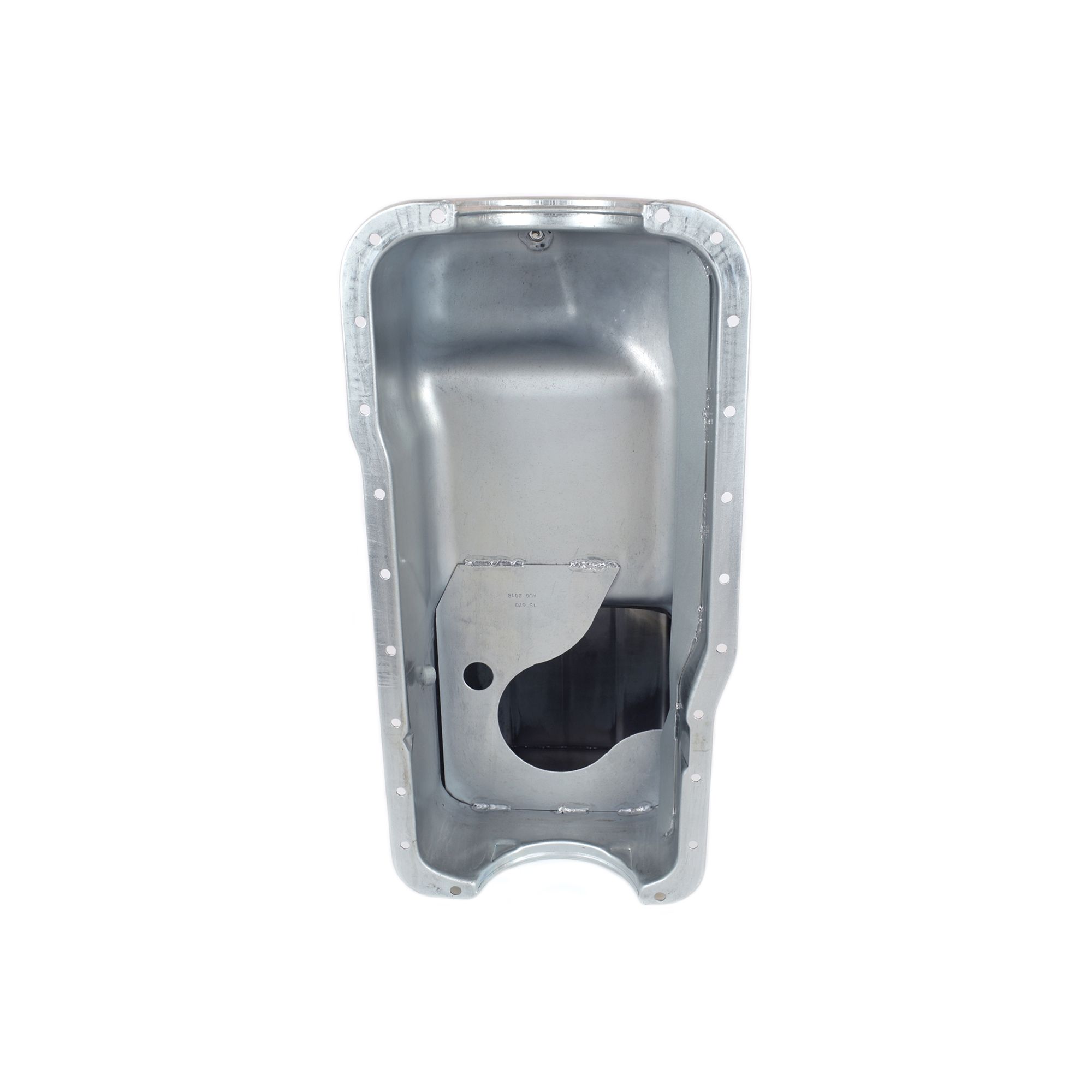 This deep rear sump oil pan is for Ford 351 Windsor blocks in Fox Body Mustangs. It has a 9" deep by 7" long sump and a 7 quart system capacity. This pan requires one of our pickups.