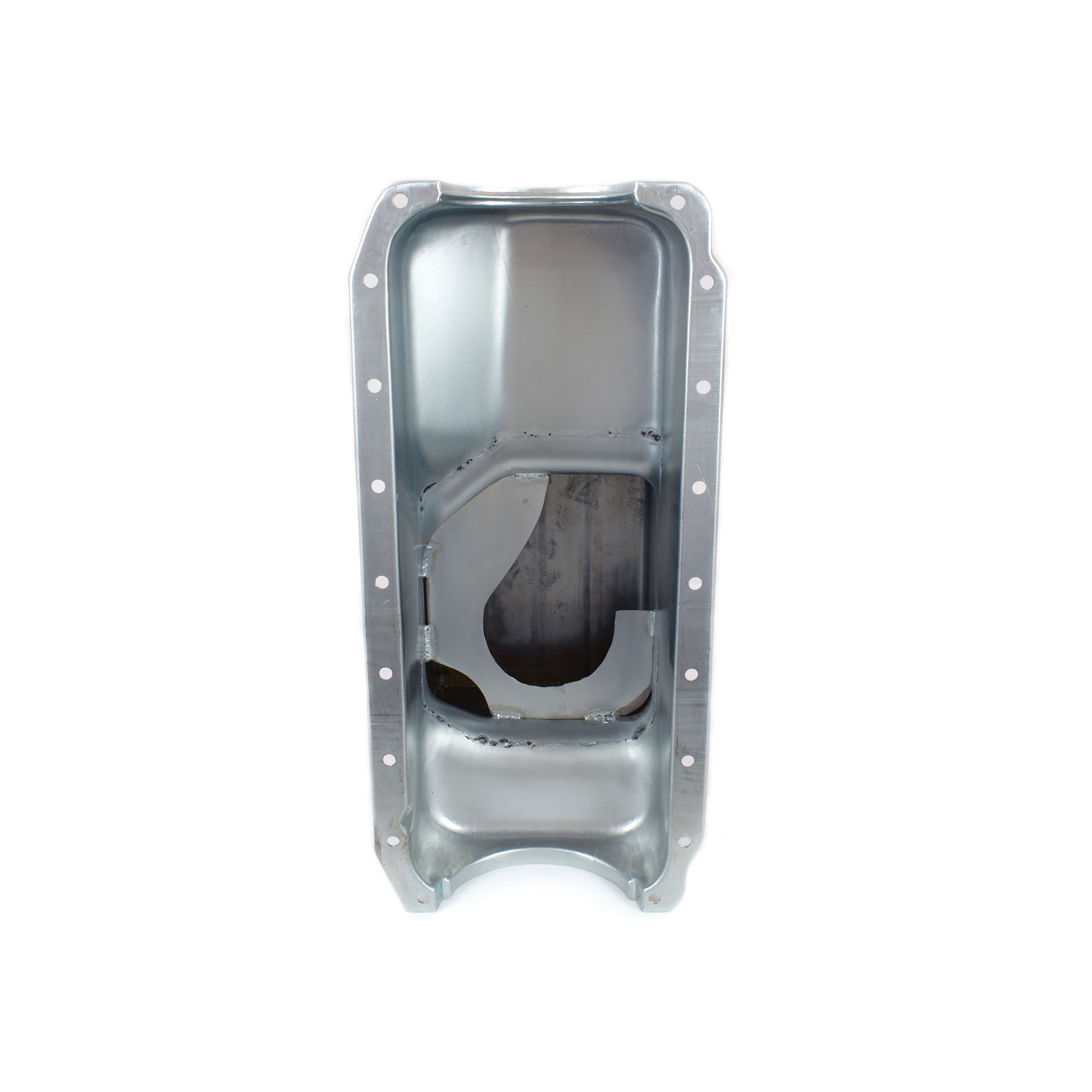 This street / strip oil pan for SM. Block Chrysler 360 engines fits most production chassis. It features a deep sump and built in slosh baffle for oil control and a magnetic drain plug. Sump is 9" deep and provides a 7-quart system capacity.