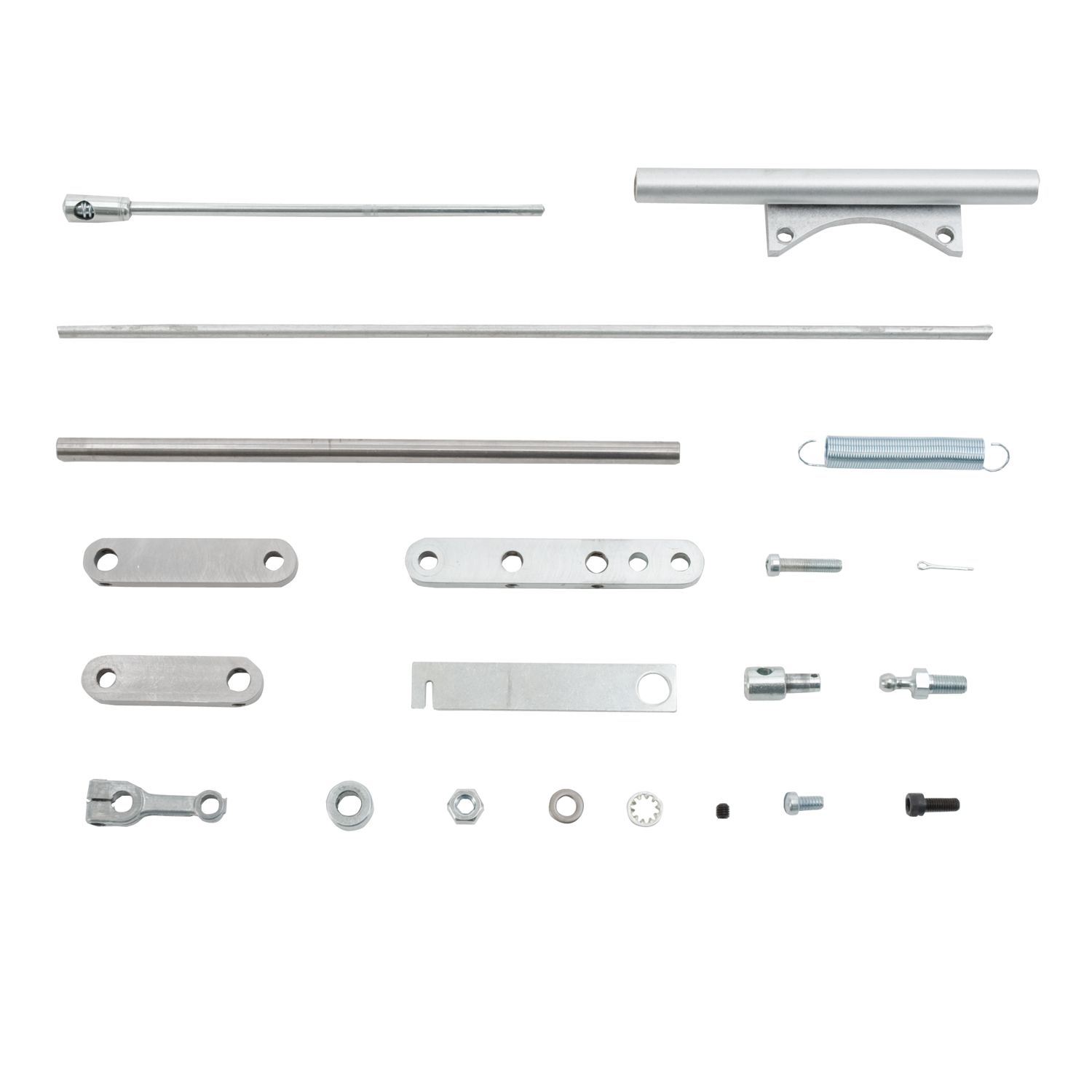 The Edelbrock 1031 throttle linkage kit is an adjustable non-progressive linkage for six Edelbrock 94 carburetors. The kit includes a return spring and bracket, linkage with provision for kick down and throttle connection.