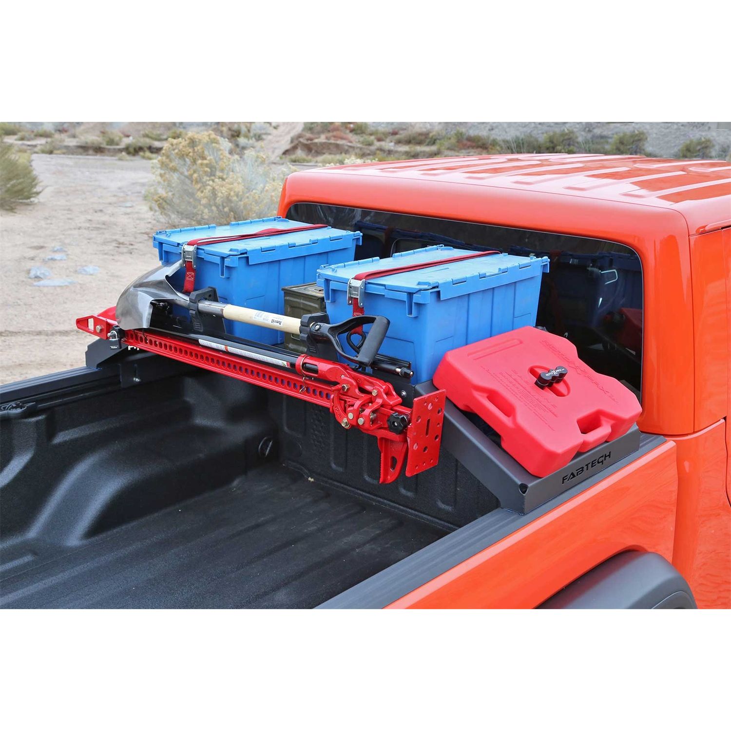 This all steel heavy duty Cargo Rack is perfect for increasing the interior carrying capabilities of the Jeep JK. The rack is located behind the rear seat creating a double deck storage area. The deck area of the rack is 22 inches above the floor and provides an additional 4 1/2 square feet of flat storage space. The three-piece design is constructed of steel plate that bolts to existing interior holes for an easy no drill installation. The rack provides a cargo carrying capaci ty of 150lbs. with rattle free operation. Multiple slotted holes on the perimeter of the cargo rack tray allow the use of tie down straps, bungee hooks or rope to properly secure cargo. This rack has been thoroughly tested in rugged offroad conditions and is finished in tactical black powdercoat with edge molding to prevent abrasions while accessing cargo. Fabtech's Cargo Rack is the strongest interior rack on the market for those that want the best for their JK Wrangler.