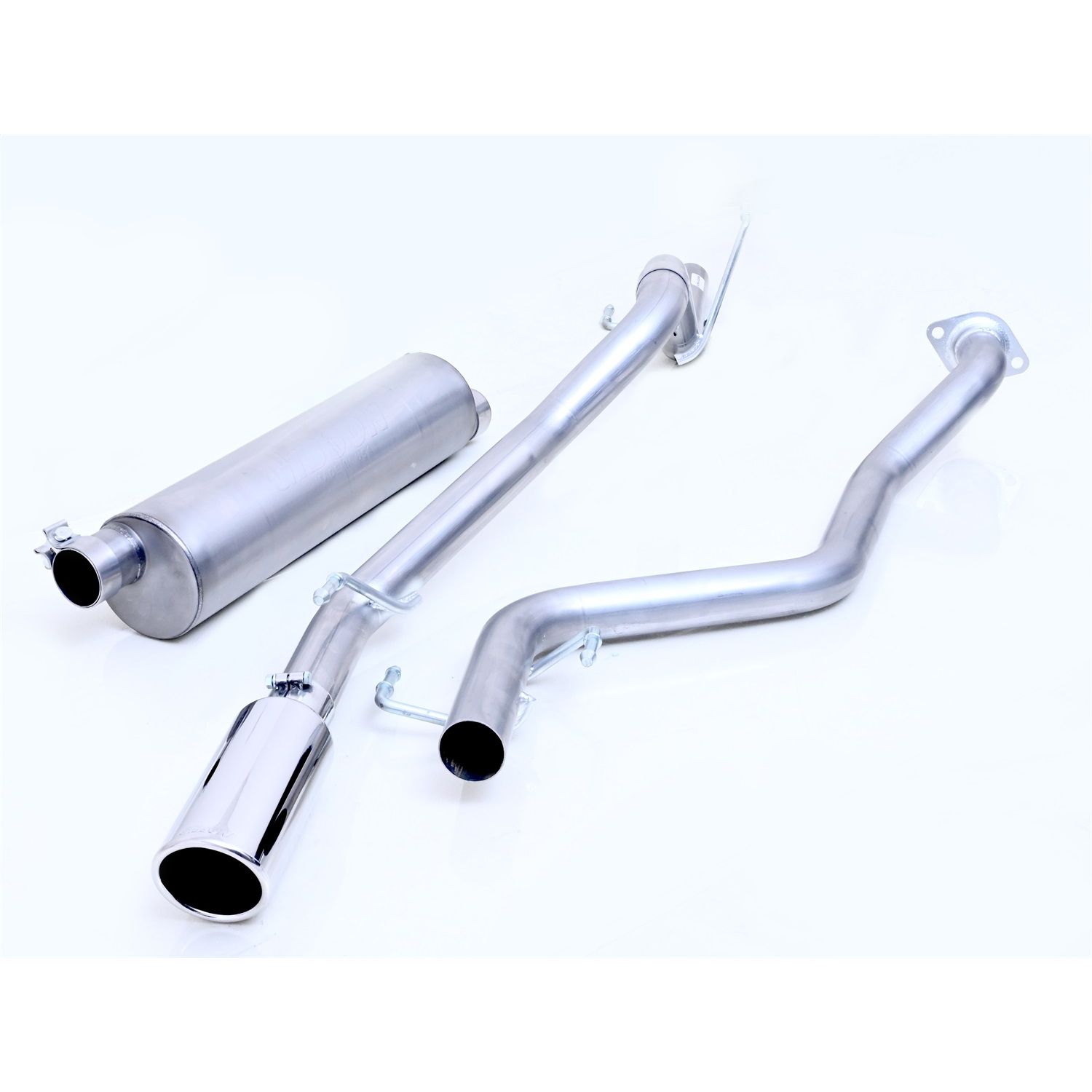 Cat-Back Single Exhaust System; Stainless; 2.5 in. Tubing; 6 in. Round Body; 2.5 in. Offset Inlet/Outlet; L-24 in.; 4 in. Polished Slash-Cut Tip; Exit Behind Pass. Rear Tire;