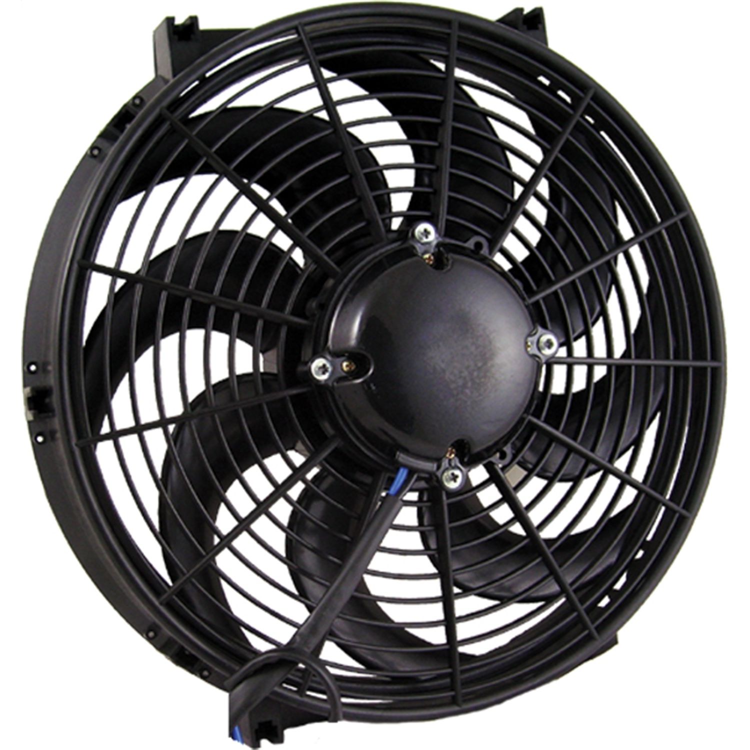 Challenger Series Universal Fan with a quiet, reversible S-blade design works as a puller or a pusher fan. Made of all glass-filled nylon construction, and includes four 90 degree mounting feet. Recommended wire harness is sold separately.