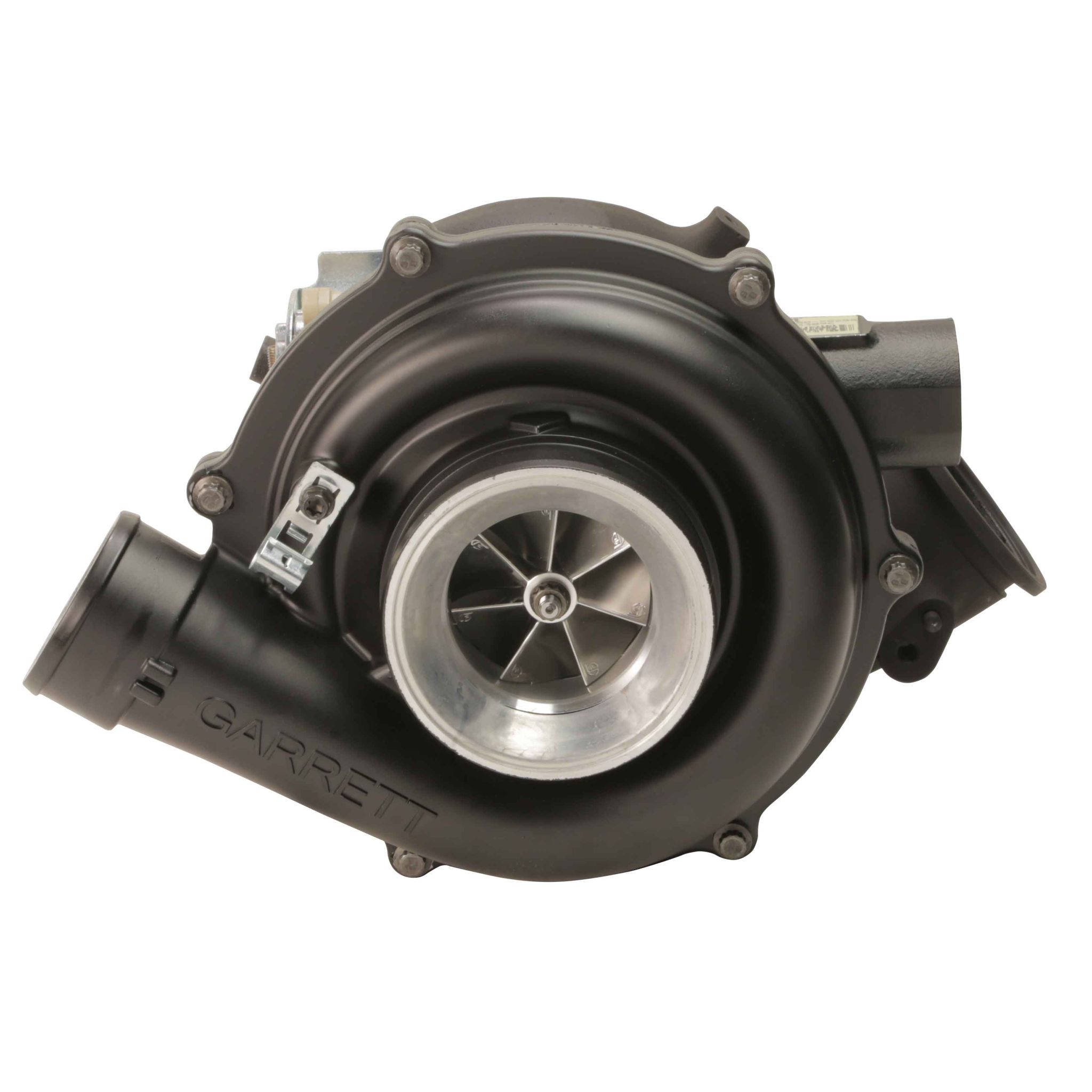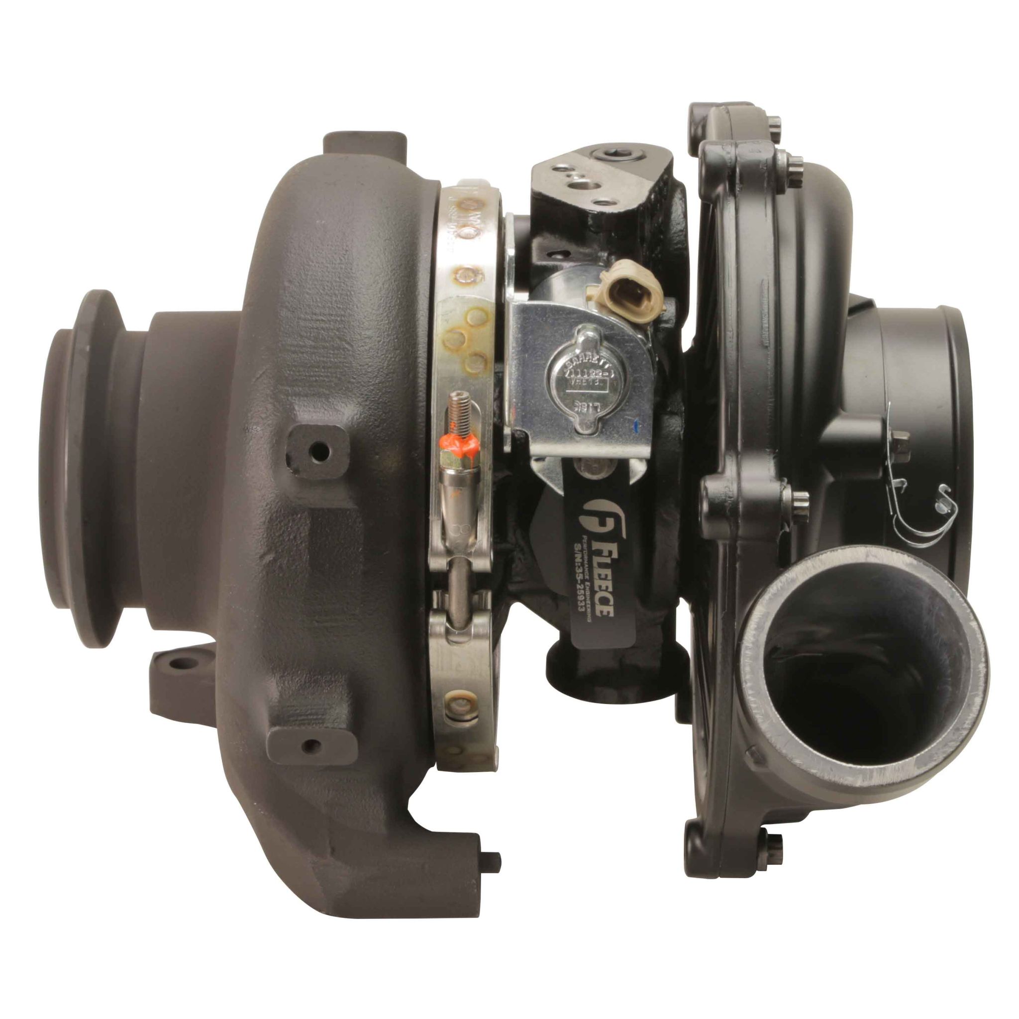 The Brand New NO CORE CHARGE Ford 6.0L VNT Cheetah Turbocharger is a drop-in replacement turbocharger for 2003-2007 6.0L Ford diesels. It comes with a Fleece Performance Engineered 63mm FMW compressor wheel and high flow 66mm Cheetah turbine wheel. This stock replacement turbo is guaranteed to enhance your driving experience. You'll enjoy the spool up and throttle response of a small turbo and still get the big top end power you're looking for. Rated at 650 RWHP this is the ultimate combination for dual purpose applications. If you are towing during the week, and sled pulling on the weekend, the 63mm FMW VNT Cheetah is just the ticket. Stock Appearing: 100% Stock Appearing. This turbocharger uses the stock housings with updated internals. This allows you to keep all factory systems intact yet allow you to safely run 40 PSI of boost. No aftermarket components or modifications needed for installation. Proven Technology: These turbochargers are built with genuine Garrett Turbocharger parts. They feature upgraded shaft bearings and 360 degree thrust bearings. Powerful Yet Responsive: These turbochargers spool like stock, thanks to the variable nozzle technology (VNT) which allows the turbo to act smaller upon spool-up and then open up to flow more exhaust on the top end. FPE Exclusive FMW Wheel Technology: Forged Milled Wheels are Stronger than Billet Faster Spool-Up Increased Throttle Response Broader Torque Curve 2.5" Work Stock Legal The Ultimate Drop-In Replacement Performance Turbocharger