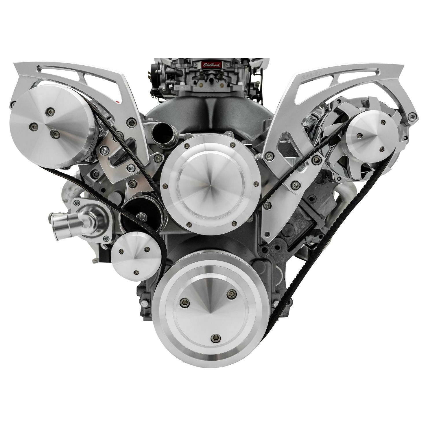 NOTES: WIDE KIT. WORKS WITH MECHANICAL OR ELECTRIC THROTTLE BODIES. THIS KIT IS NOT DESIGNED TO REPLACE THE OEM PULLEYS IN A CORVETTE, RATHER IT IS DESIGNED FOR INSTALLATION IN STREET RODS, MUSCLE CARS AND SOME ENGINE SWAP APPLICATIONS. USE ADDITIONAL BALANCER HUB FOR MOUNTING CRANK PULLEY. WILL NOT WORK WITH VVT ENGINES. 78.00 IN. BELT LENGTH
