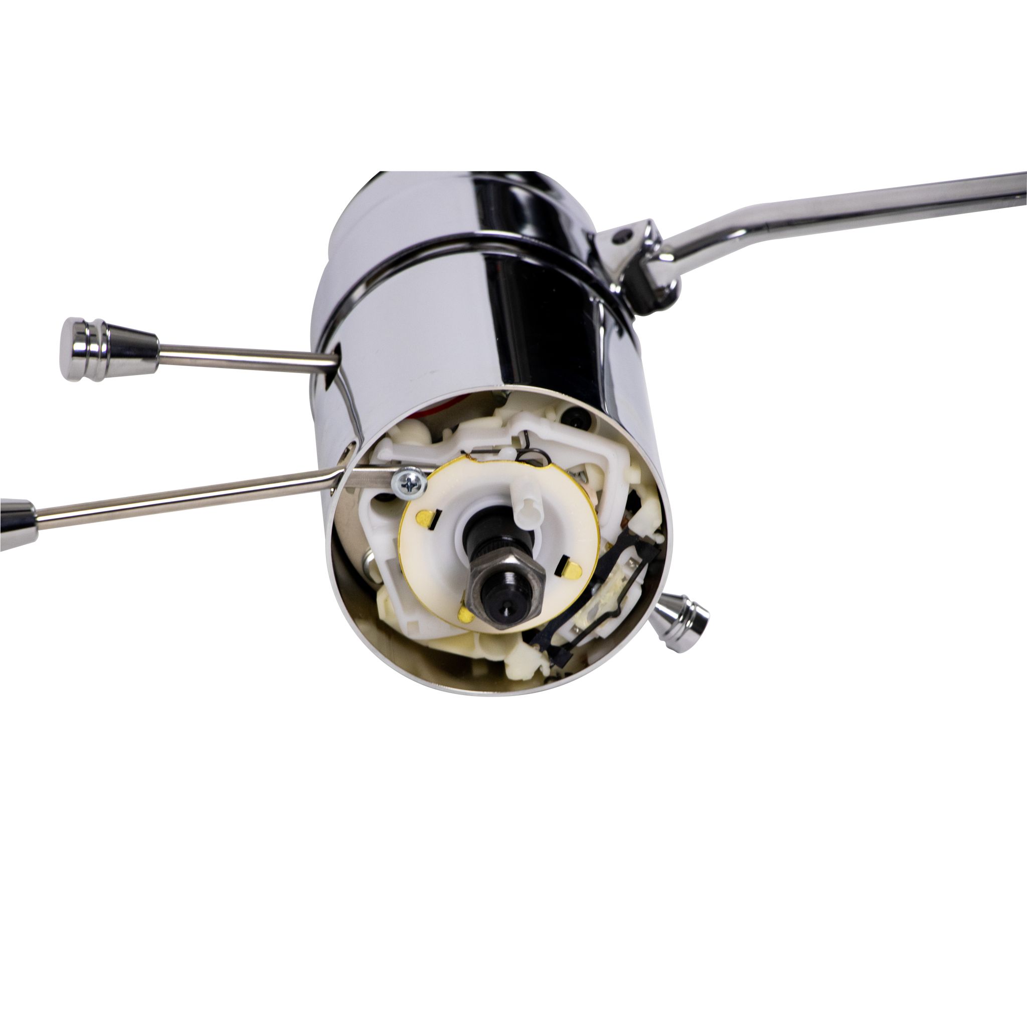 This retrofit column is designed to fit your 1963-64 Impala and does NOT require modification to your original vehicle to install. Simply remove your old column, saving your original under dash mount and floor mount. Using Borgeson joints and shafting, install your new steering column in place of the old. A new aluminum dash bezel is included with the 1963-64 column. These columns come complete with a neutral safety switch (shift indicator not included). The shift pattern on the column allows you to use either a 3 or 4-speed automatic transmission (except early Powerglides, as they have a reverse pattern transmission). A shift linkage (new or original) is required for installation and will attach to the lower shift arm provided on the column. Add an aftermarket wheel (using an adaptor) or original wheel but keep in mind that an aftermarket wheel may push the wheel closer to the driver and the original wheel will increase the overall length of the column towards the driver.