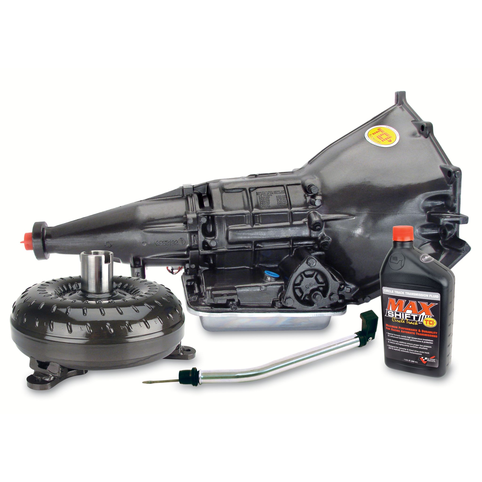 dipstick and premium, high-viscosity TCI Max Shift Circlematic Transmission Fluid. As with every TCI Circlematic Transmission, those used in circle track packages include several advantages over the commonly used manual transmissions, including lighter weight (50-60 lbs. over standard), more economical pricing and performance improvements. Some of these improvements include instant throttle response, superior engine braking capabilities and quicker lap times. The converters used in these packages are specially designed with a lower “positive lock-up” stall speed which can eliminate up to 10% of power robbing slippage found in OEM and lesser quality converters. This can ultimately result in reducing lap times by as much as one to two-tenths of a second. Circle track racers looking for the ultimate transmission/torque converter setup will find the TCI Circlematic Transmission Packages to be the perfect solution.