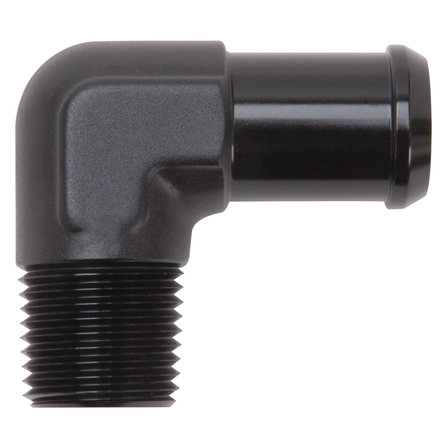 Edelbrock part #8165 Heater Hose End Fitting, 90 deg. with 1/2" NPT and 3/4" Barb. Edelbrock heater hose end is designed to hold up to any plumbing task you have.