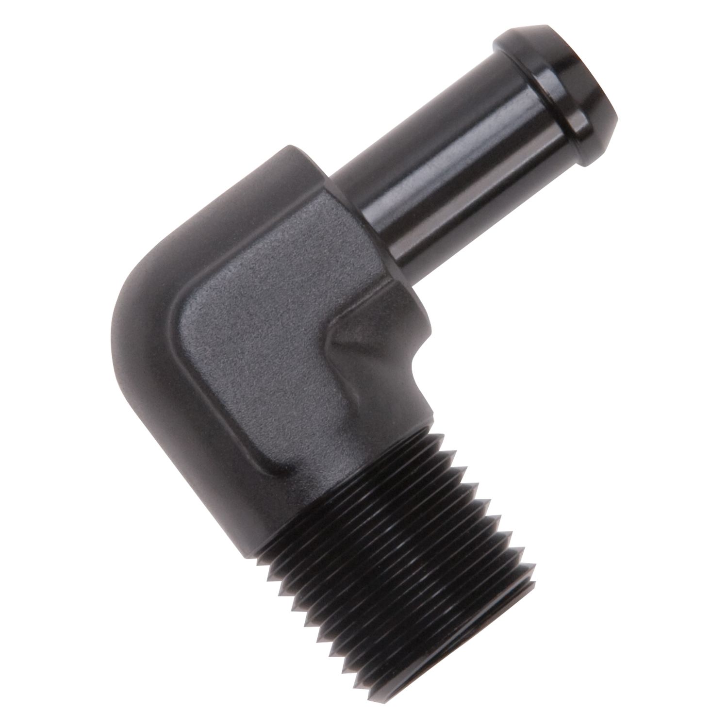 Edelbrock part #8180 Heater Hose End Fitting, 90 deg. with 1/2" NPT and 1/2" Barb. Edelbrock heater hose end is designed to hold up to any plumbing task you have.