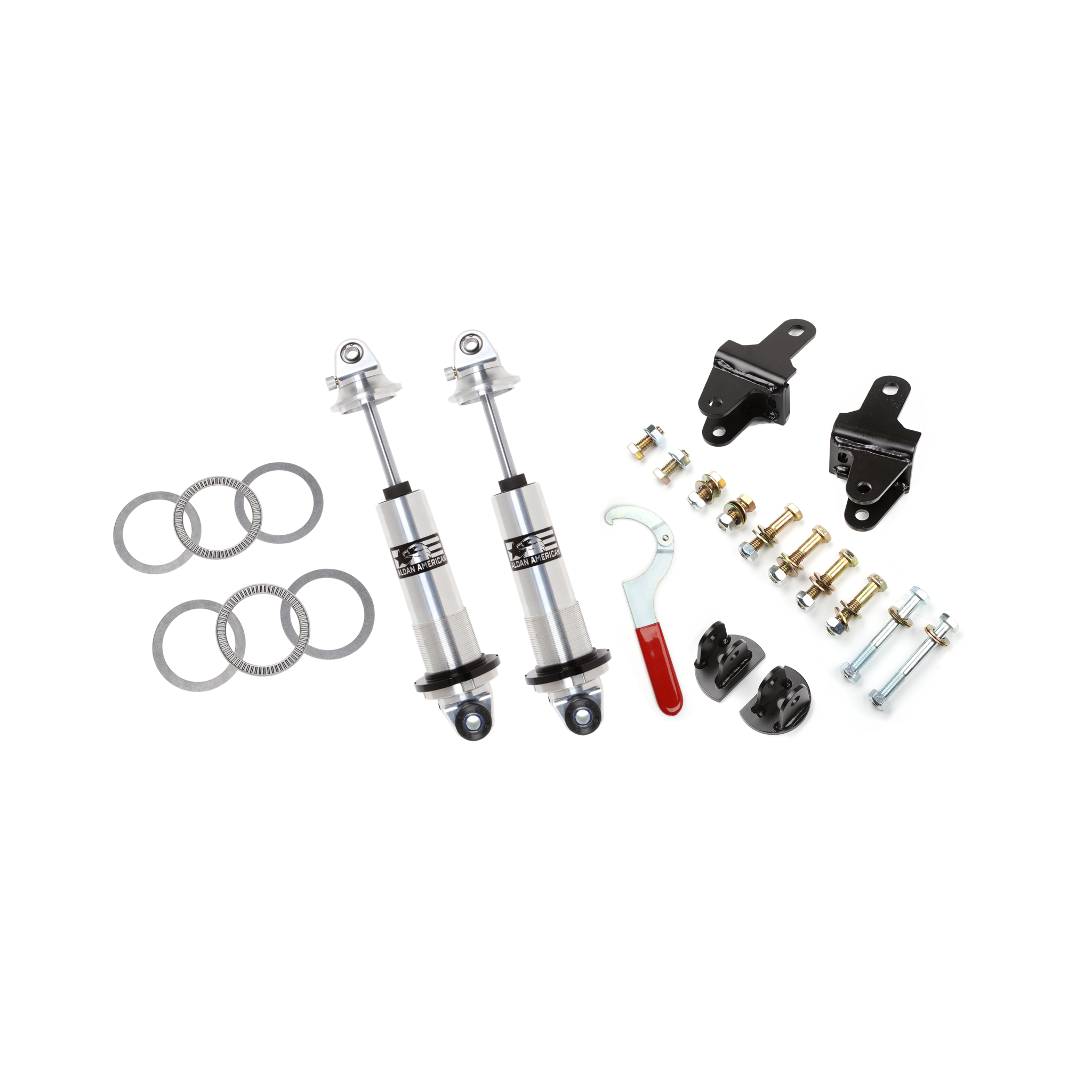 Coil-Over Kit, Ford, 79-04 Mustang, Rear, Single Adj. 2.5 in. Springs Sold Separately. Bolt on kit converts stock suspension to coil-over suspension. Includes 2 Phantom Series coil-overs, hardware, bracketry. Made in USA