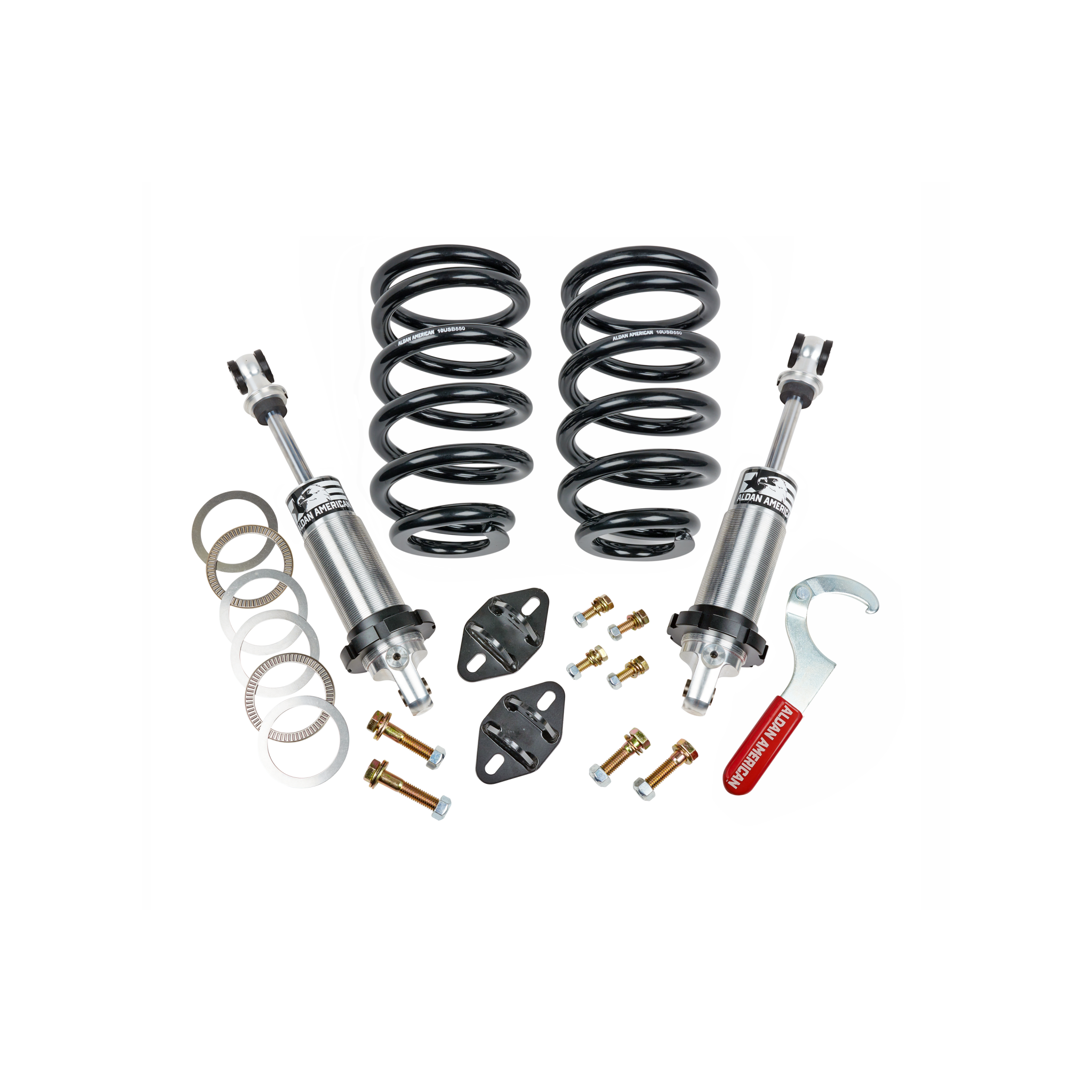 Coil-Over Kit, GM, 58-64, Olds 88, Front, Single Adj. 550 lb. Springs. Bolt-on kit converts stock front suspension to coil-over suspension. Includes 2 coil-overs, 2 coil-springs, brackets and hardware. Made in USA