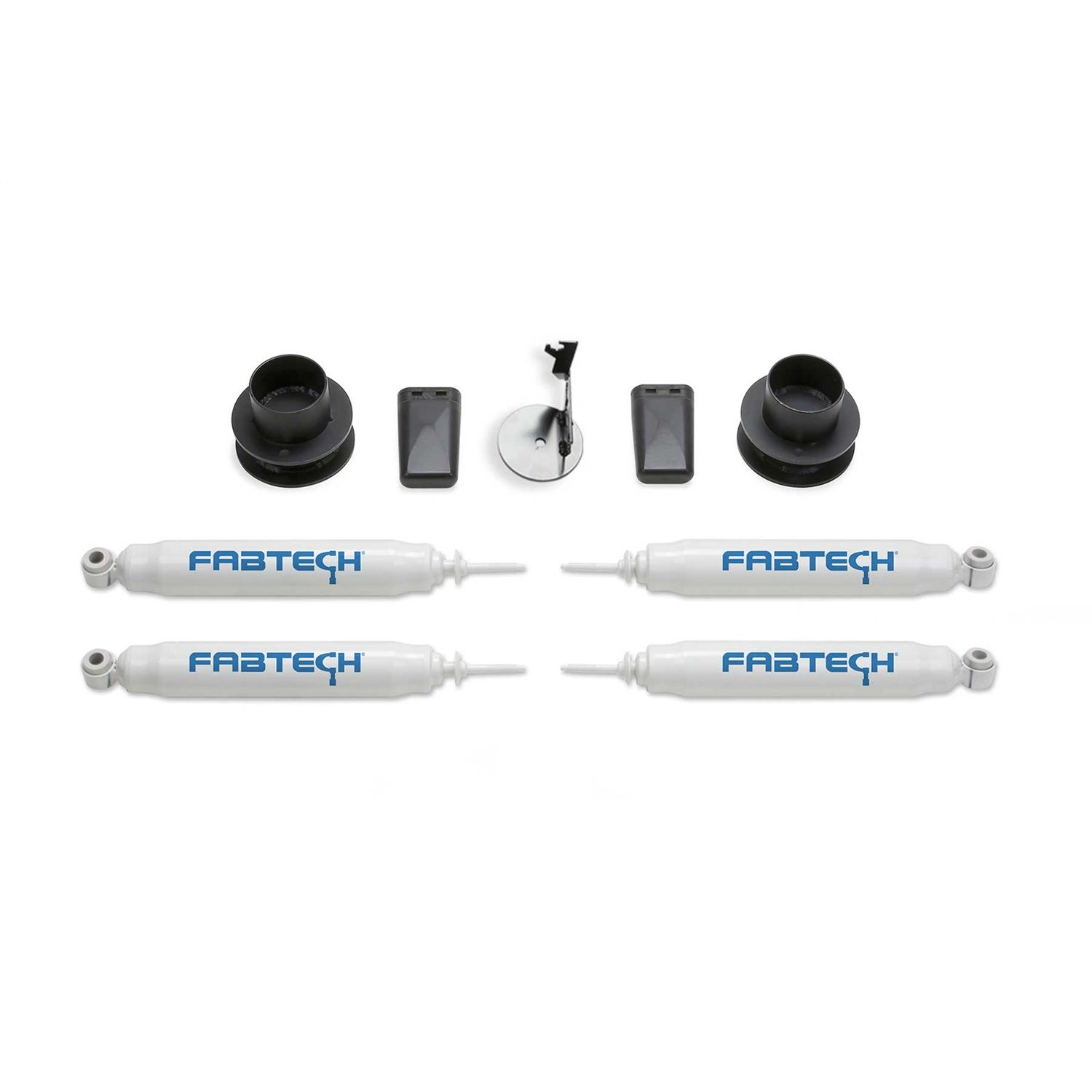 The 2.5 Lift system for 2014 2500 Rams, with Radius Arm front suspension, features more than just basic spacers. Dodge designed the front coil springs with a large bow to increase vehicle stability and handling. Unlike other flat spacers on the market, Fabtechs angled spacers retain this important feature preserving the factory ride characteristics. The front shocks are replaced with longer length units to allow for full suspension travel while improving the damping of the front suspension. Extended length bump stops are included in this kit to prevent the coil springs from binding at full compression while also eliminating Trac Bar interference.