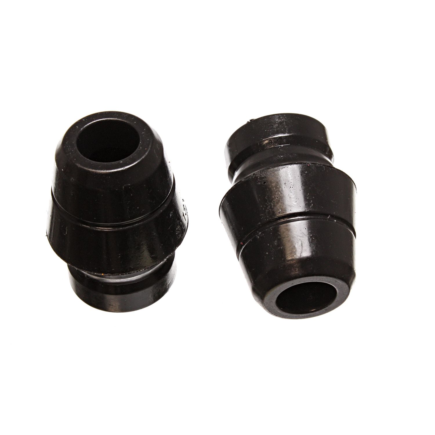Energy Suspension(R) performance bump stops help cushion a collapsing suspension, preventing bottoming-out and expensive vehicle damage. Hyper-Flex(TM) performance polyurethane bump stops for control arms, traction bars, leaf springs, etc. are guaranteed to last longer and operate more efficiently than original rubber stops. The smaller, general purpose bullet shaped snubber is ideal for control arms. The low profile button head is for use when clearance is limited. Our large competition race style bump stops smooth out compression better and have a large reinforced metal plate welded to the mounting plate and molded-in. Each style is specially designed for a perfect and custom fit and each style has it's own durometer, hardness, characteristics. Energy's wide selection of bump stops are available in red or black color.