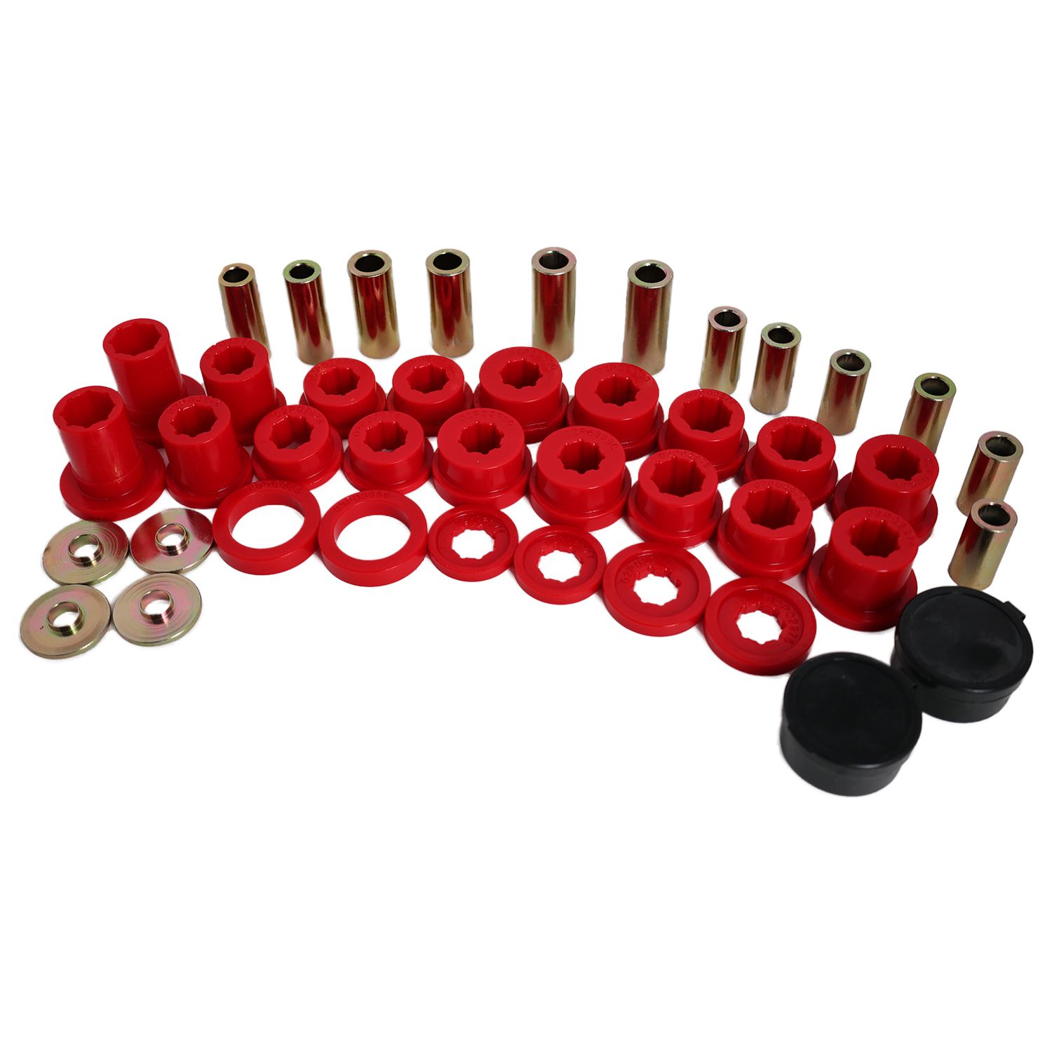 For both front and rear of suspensions on cars, trucks and SUVs. Made of Energy's Hyper-Flex performance polyurethane for optimum performance and durability. Maintains proper alignment under extreme conditions on the street, track or off-road. Improves vehicle handling, cornering and overall control. Full floating for smoother, efficient operation. Outlasts and outperforms rubber.