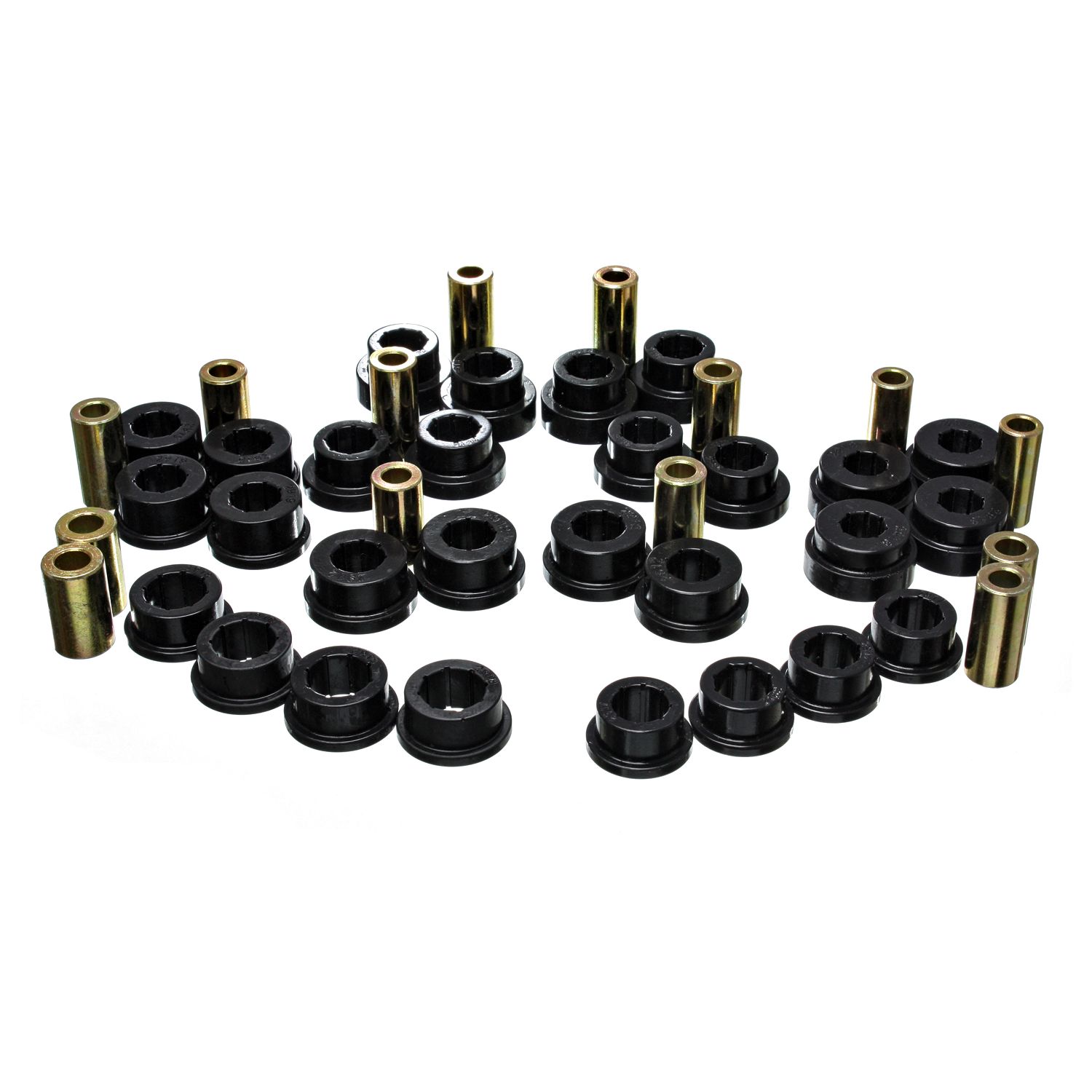 For both front and rear of suspensions on cars, trucks and SUVs. Made of Energy's Hyper-Flex performance polyurethane for optimum performance and durability. Maintains proper alignment under extreme conditions on the street, track or off-road. Improves vehicle handling, cornering and overall control. Full floating for smoother, efficient operation. Outlasts and outperforms rubber.