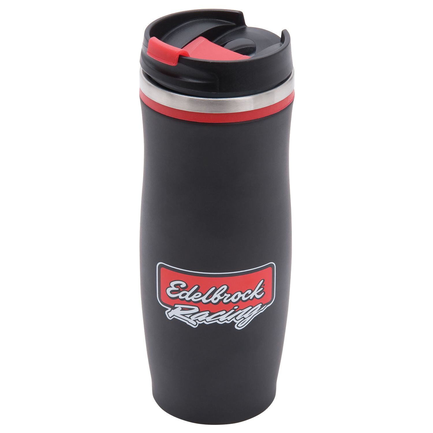 12oz. double wall 18/8 stainless steel Edelbrock Racing tumbler with threaded snap fit lid and color accent. Keeps liquids hot for 2 hours / cold for 4 hours.