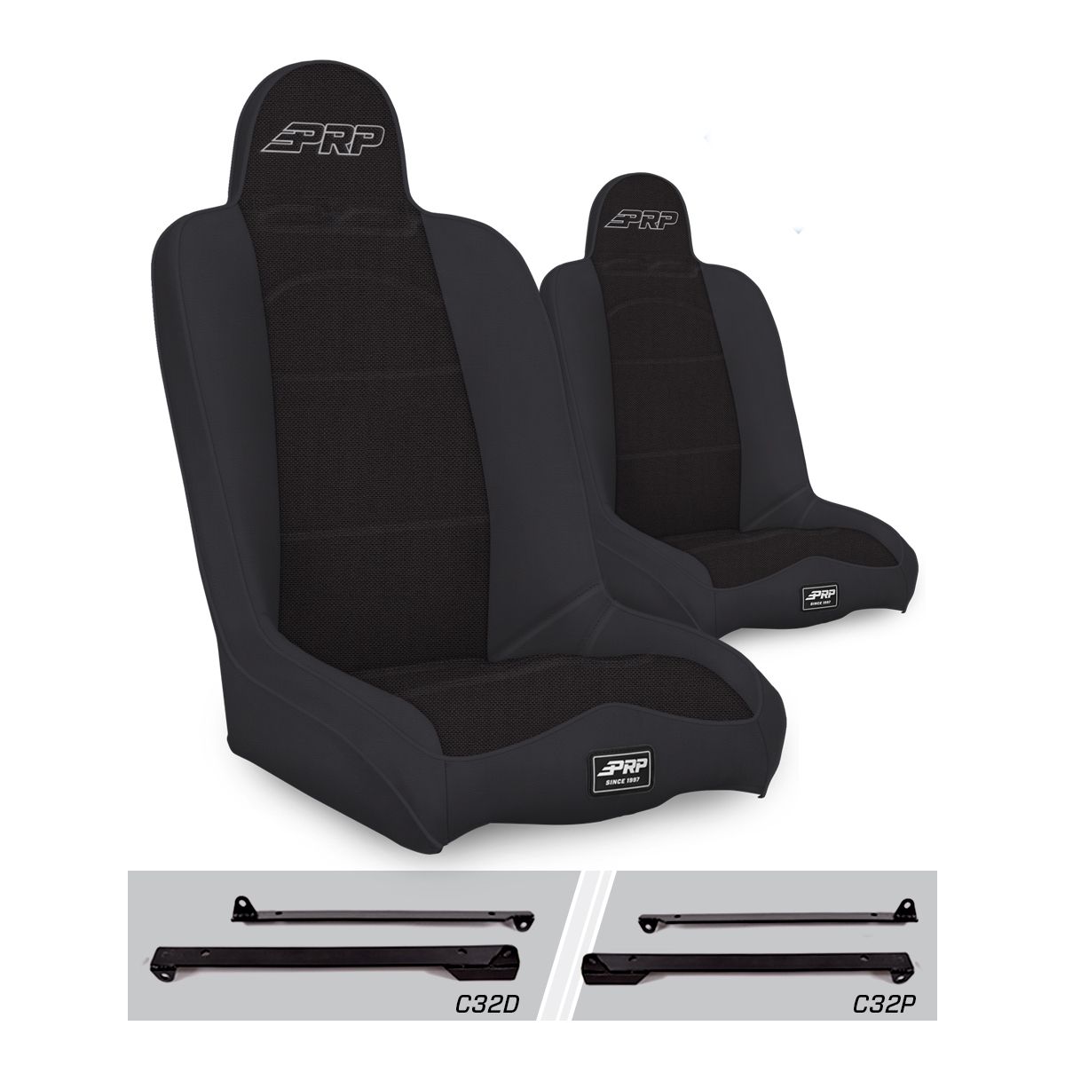 Daily Driver High Back Suspension Seats Kit for Jeep Wrangler CJ7/YJ (Pair), Black
