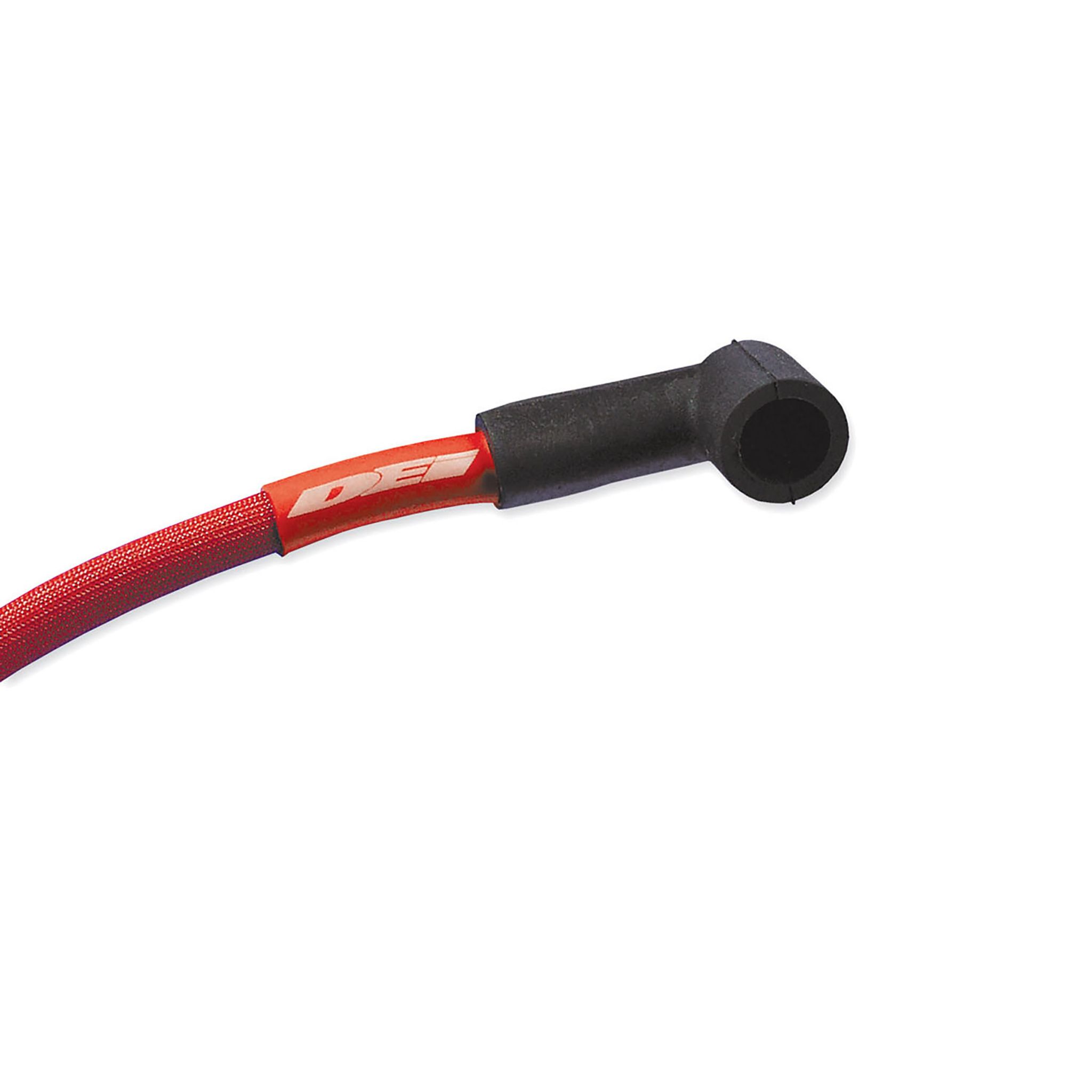 Protect-A-Boot Ringless Sleeves are superior protection for extreme angled plug wire boots that solve the problem of burning and cracking plug boots and wires from header and engine heat. DEI Protect-A-Boot Ringless Sleeves are uniquely designed to protect spark plug boots & wires against the harmful effects of direct and continuous heat – up to 1200F. Continued exposure to extreme heat generated from the engine block, exhaust manifold and headers can cause burn through, hardening or cracking of the spark plug wires and boots. Like the original Protect-A-Boots product, the ringless sleeves offer the same heat protection and double wall construction for added strength and durability, yet are designed to provide a universal fit for extreme angled, oversized, or rigid boots like ceramic ignition wire ends. The 1.25 in. I.D. at both ends and pliable construction allow the sleeves to fit multiple angled spark plug boots. Otherwise the material is the same as DEI's popular Protect-A-Boots that are made from a tightly woven high temperature resistant glass fiber material. Universal – fits multiple angled spark plug boots 1.25 in. I.D. x 6 in. length Withstands up to 1200F of direct heat Glass fiber double-wall construction