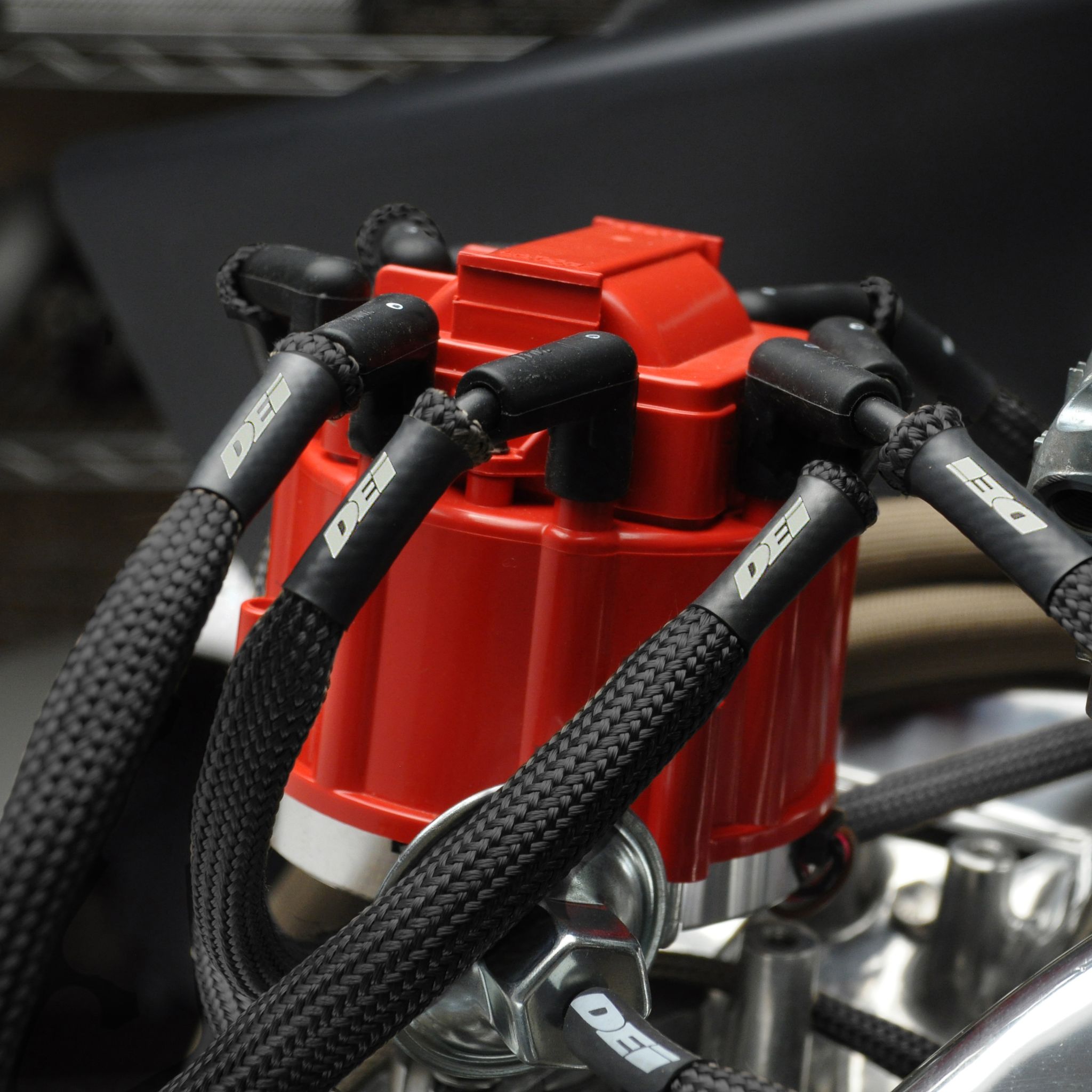 DEI Protect-A-Wire kits provide thermal protection for expensive spark plug wire sets. Protect your wires from potential burning, cracking, and hardening typically caused by severe under hood heat. DEI wire heat protection kits easily install by removing the distributor boot and sliding Protect-A-Wire(TM) over spark plug wire. Constructed from high temperature resistant glass fiber material Protects electrical wiring, speedometer cable, hoses & more 8mm ID Includes DEI Hi-Temp Boot Shrink Tubes 2 Cylinder Kit Contains: 7 feet of sleeving & 6 Hi-Temp Boot Shrink Tubes 4 Cylinder Kit Contains: 13 feet of sleeving & 12 Hi-Temp Boot Shrink Tubes 8 Cylinder Kit Contains: 25 feet of sleeving & 25 Hi-Temp Boot Shrink Tubes