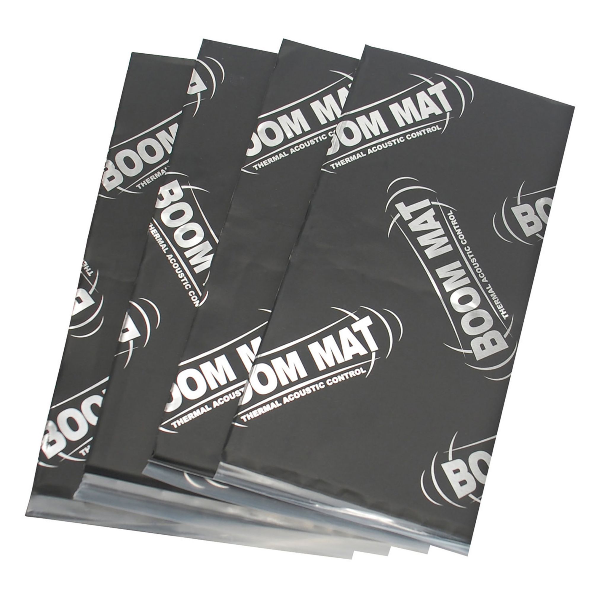 Boom Mat Vibration Damping Material is a premium quality damping material providing extreme noise damping for the most demanding commercial and sound competition applications. Interior panels vibrate and generate noise. Boom Mat stops that noise by trapping it between our thick, 4 mil aluminum stiffening top skin and the asphalt free, pure butyl, noise constraining layer. Plus worry-free no snag adhesion to any interior surface, vertical or overhead, even in the most demanding of temperature extremes. Those quality components are what makes Boom Mat Vibration Damping Material require only 25-50% coverage to get the job done. This saves weight, material cost and installation time. Easy peel plastic release liner (not a paper backing that tears) Enhances stereo performance and sound Gives you a quiet and comfortable interior Minimal prep & install time Performs in extreme temperatures Use as a first layer to control noise and dampen vibrations 2 (two) 12.5in x 24in sheets (4 sq. ft.) 4mm thick