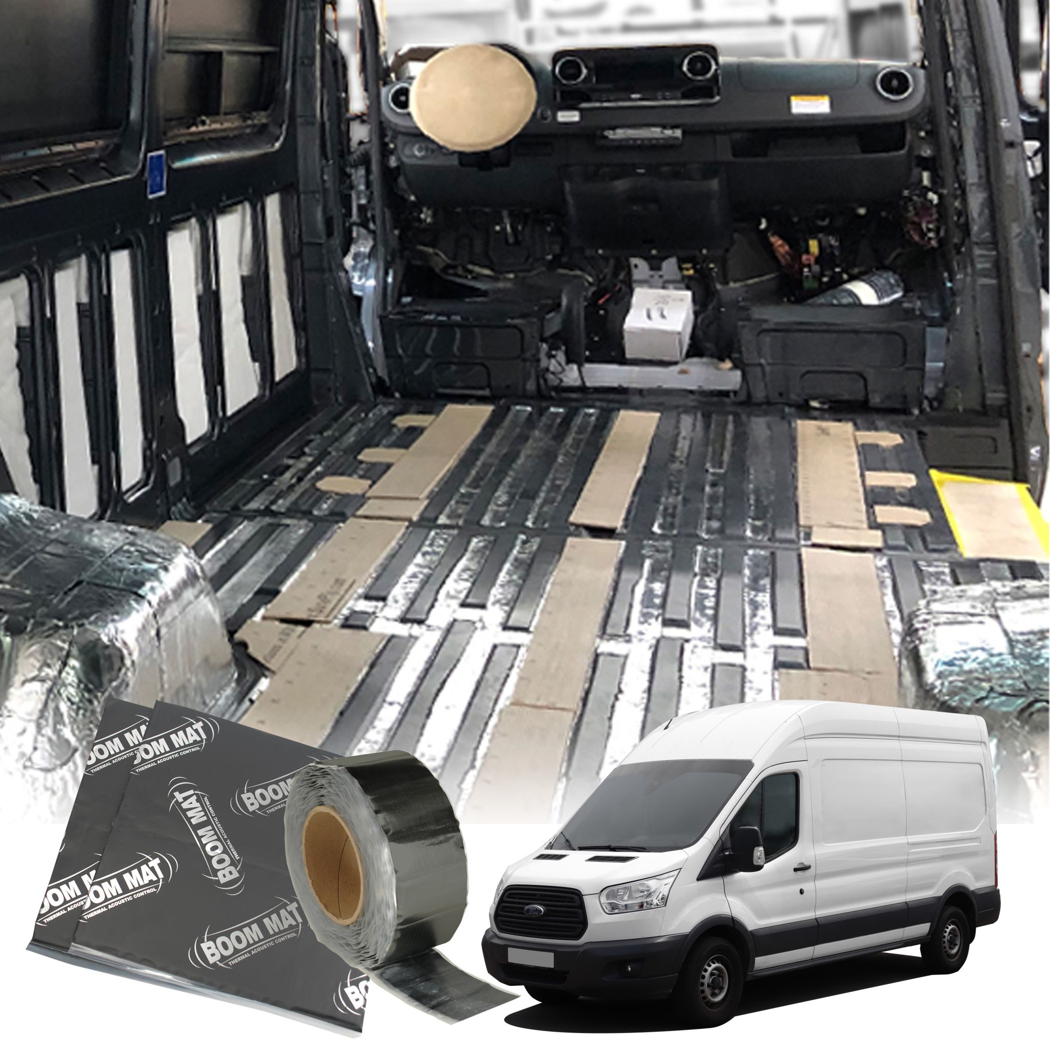 Includes: Forty 6 inch by 6 inch sheets of Boom Mat Flex, thirty-six 6 inch by 12 inch sheets of Boom Mat Flex, two 12 inch by 12 inch sheets of Boom Mat Flex, seven 2 inch by 12 inch strips of Boom Mat Tape, six 2 inch by 3 inch strips of Boom Mat Tape, one 2 inch by 20 foot roll of Boom Mat Damping Tape, and one installation roller.