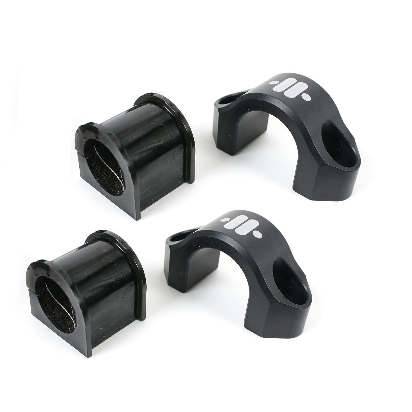 Delrin sway bar bushing kit. 1.25" I.D. x 3.125" – 3.625" wide hole pattern. Includes 1 pair of delrin inserts, polyurethane bushings and straps.