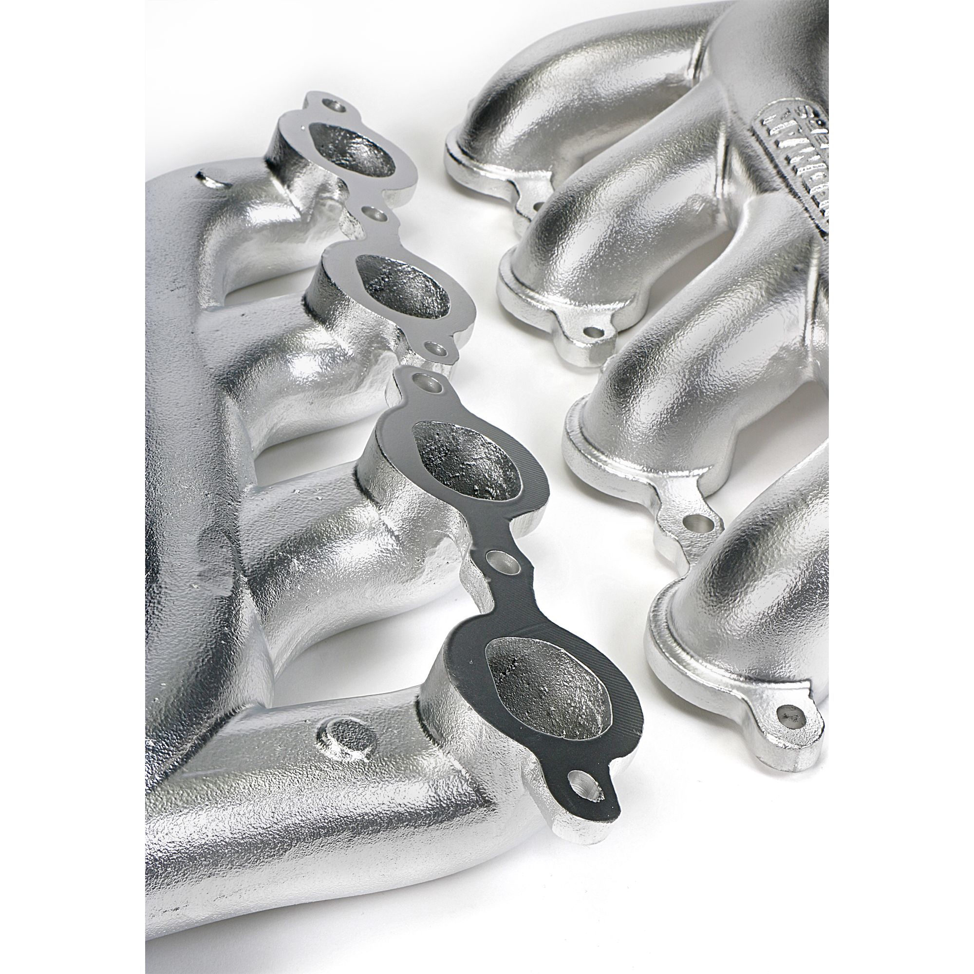 DISCONTINUED-LS ENGINE SWAP CAST EXHAUST MANIFOLDS; MATTE SILVER CERAMIC COATED