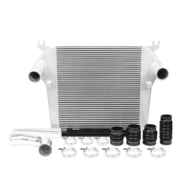 our engineers have maximized airflow by eliminating restrictive bends, allowing for a smooth and unimpeded airflow. The piping is constructed of mandrel bent 3.5in aluminum polished to a mirror finish. This kit includes Mishimoto silicone boots with DuraCore technology and constant-tension T-bolt clamps for accurate and consistent holding force. Mishimoto DuraCore technology is the synthetic material that comprises the innermost layer of all Mishimoto silicone diesel boots. Compared to normal silicone, DuraCore provides superior resistance to heat, pressure, fuel, and oil. This effectively increases the life of our boots by preventing leaks and blowouts. This package is rounded out with the Mishimoto intercooler featuring extremely durable cast aluminum end tanks and a bar-and-plate core, all designed to provide cool, dense air to your engine. Our intercooler features an increase in core volume and reduces pressure drop, which results in an overall increase in engine efficiency. All the components in this kit are engineered to last, just like your truck. Offered with either a black or silver core, the Mishimoto 6.7L Cummins intercooler kit is protected by our signature lifetime warranty.