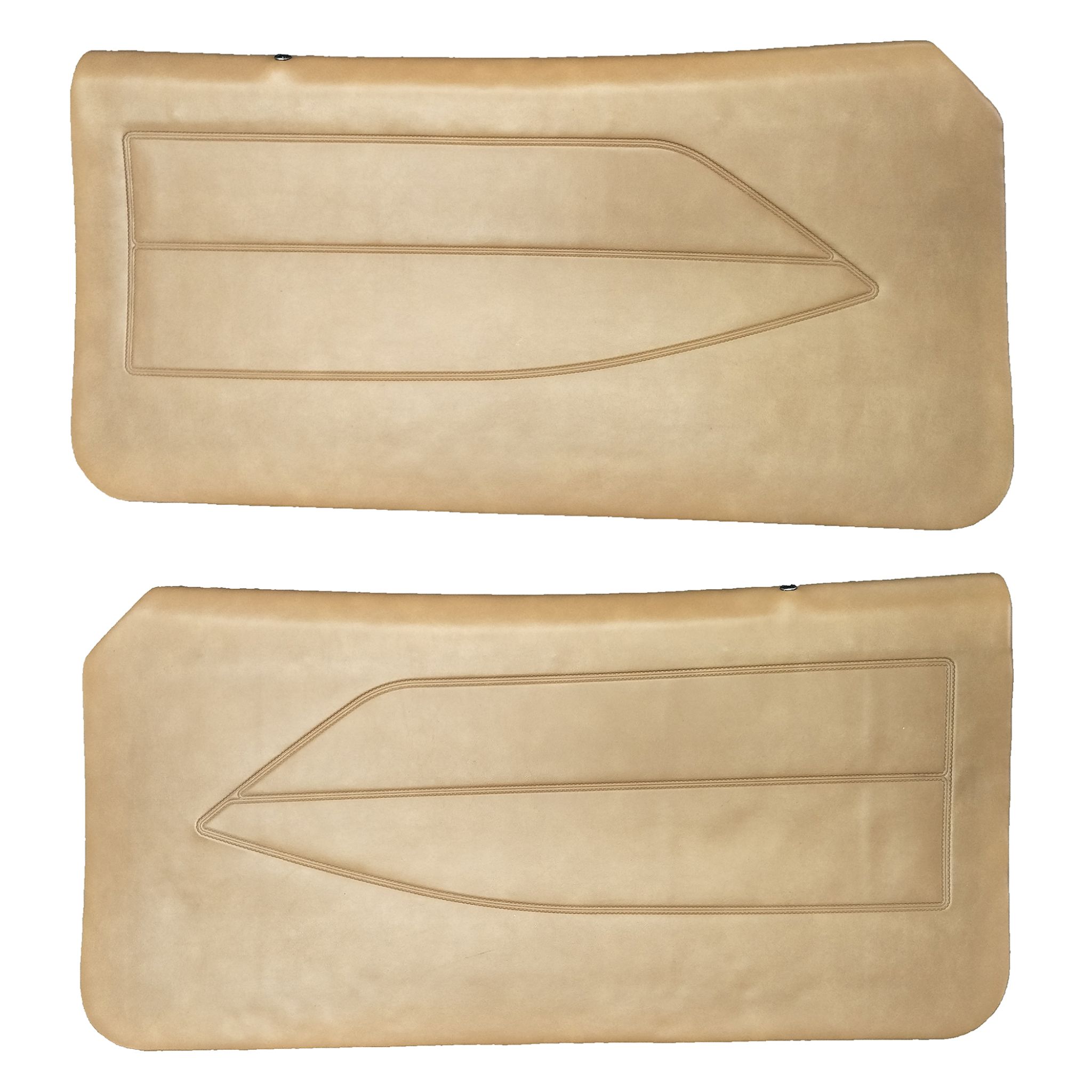 This Ford Mustang II Door Panel set is a high-quality product following the factory pleat design, sewing pattern and factory attachment points. Includes inner window felts, lock ferrule, 28 Black Double Head Xmas Tree Fasteners. Speaker Cover and Horse Head Logo must be transferred from original panels.